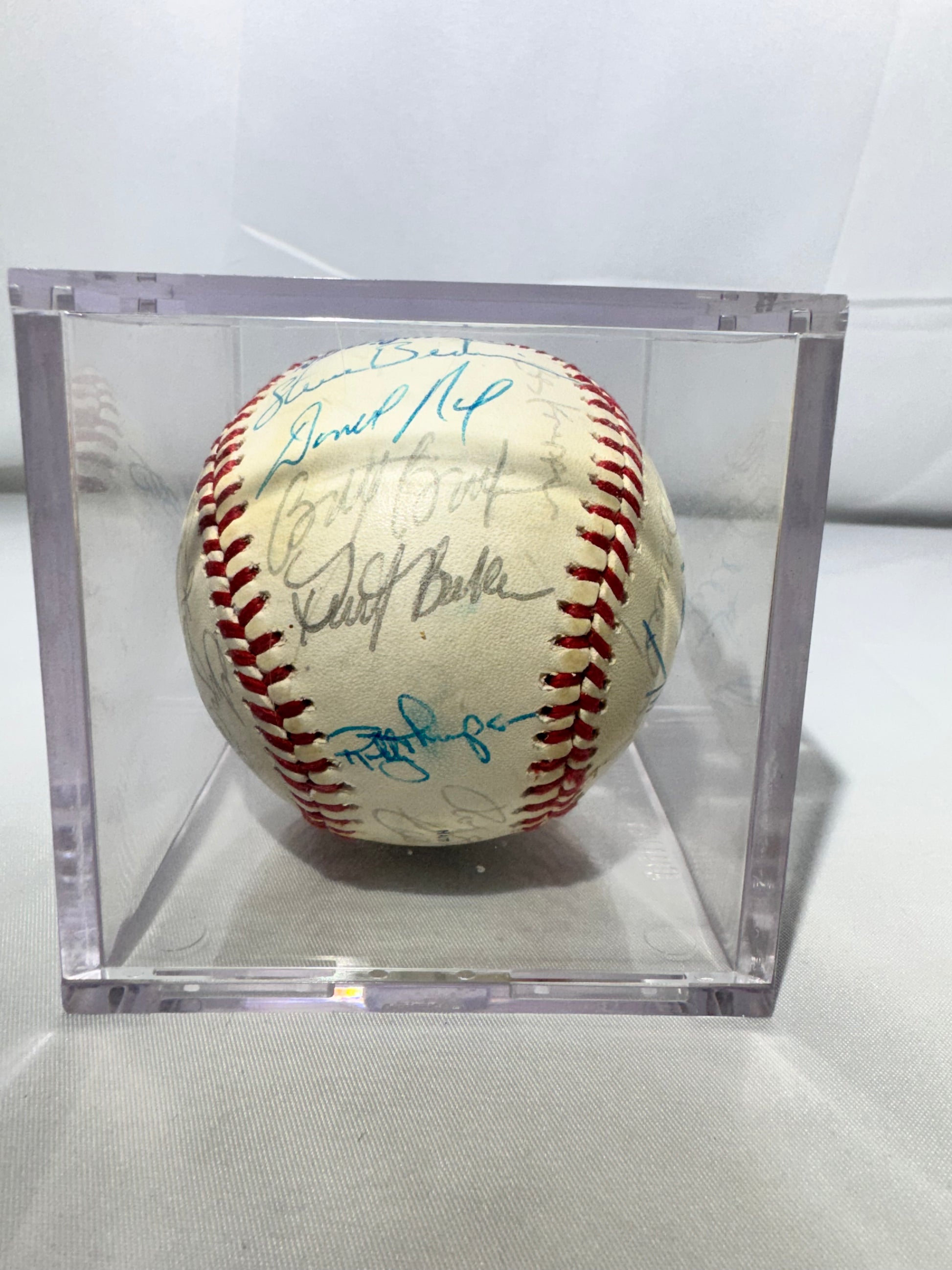 1989 World Series Official Baseball – San Francisco Giants – 32 Autographs – Will Clark, Robby Thompson, Jose Vribe, Matt Williams and Brett Butler autographs – Display Case