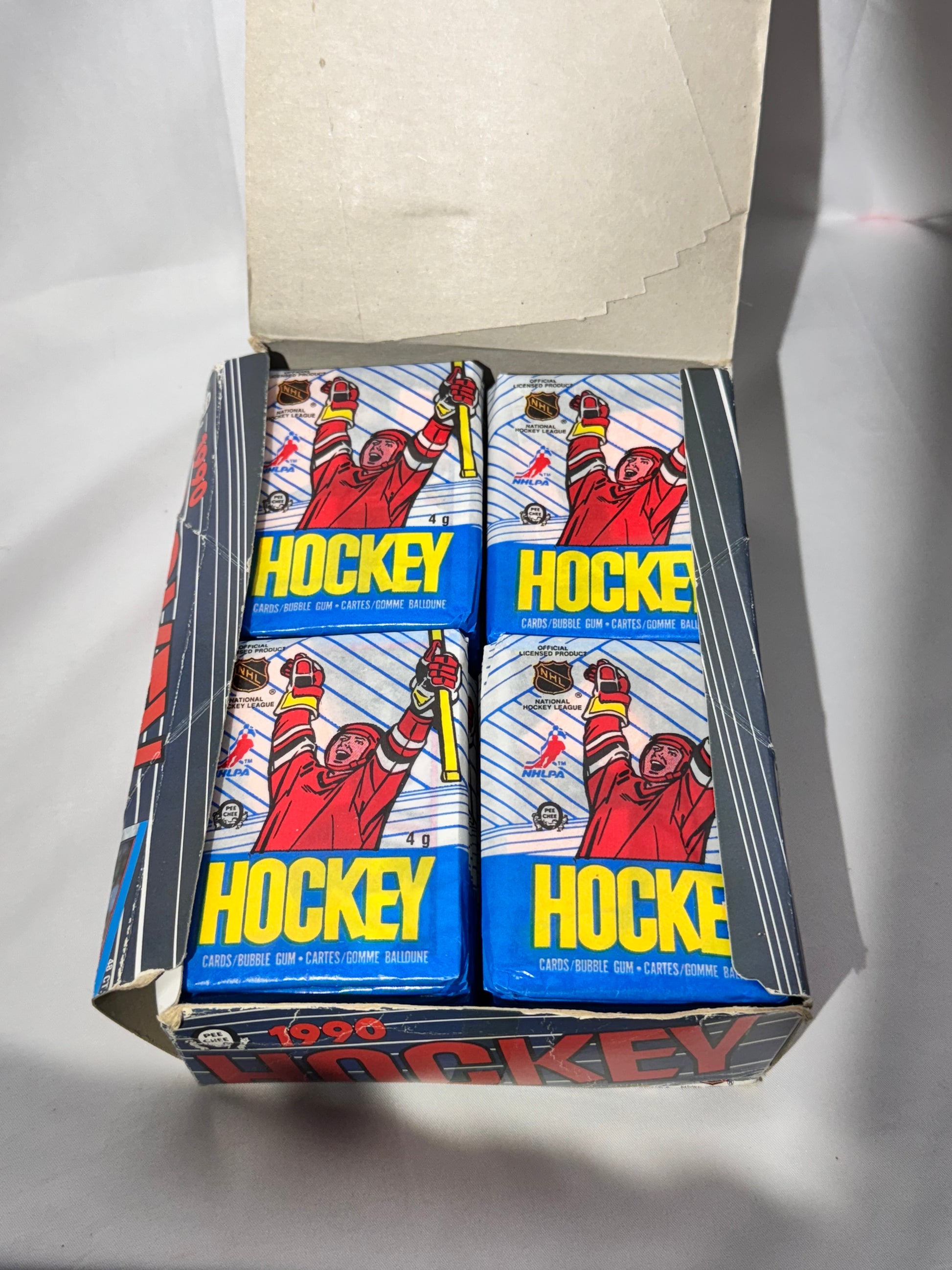 Step back into classic hockey card nostalgia with this 1990 NHL O-Pee-Chee hockey card box! This listing includes 48 factory-sealed, unopened packs, each still containing the original bubble gum.