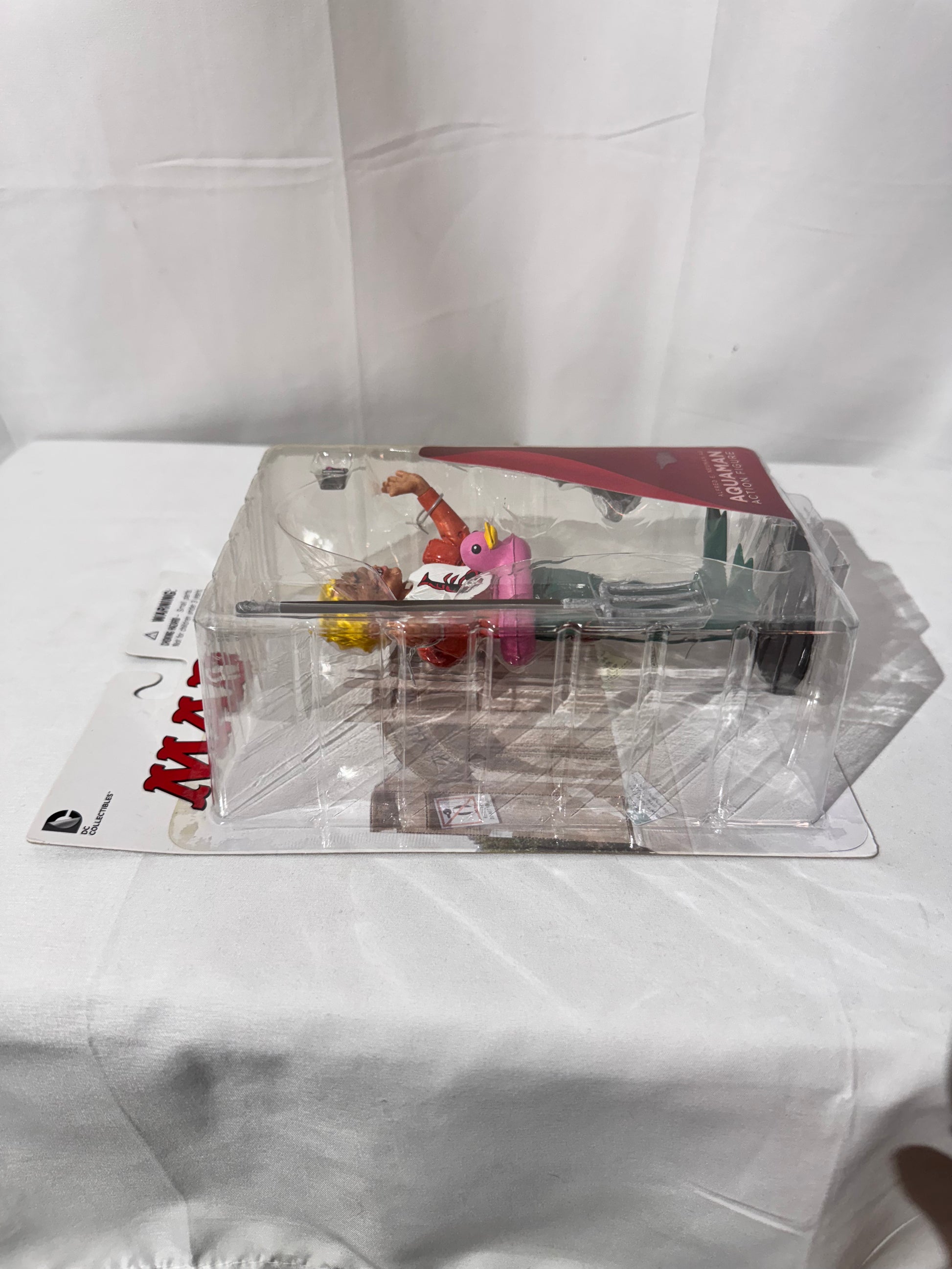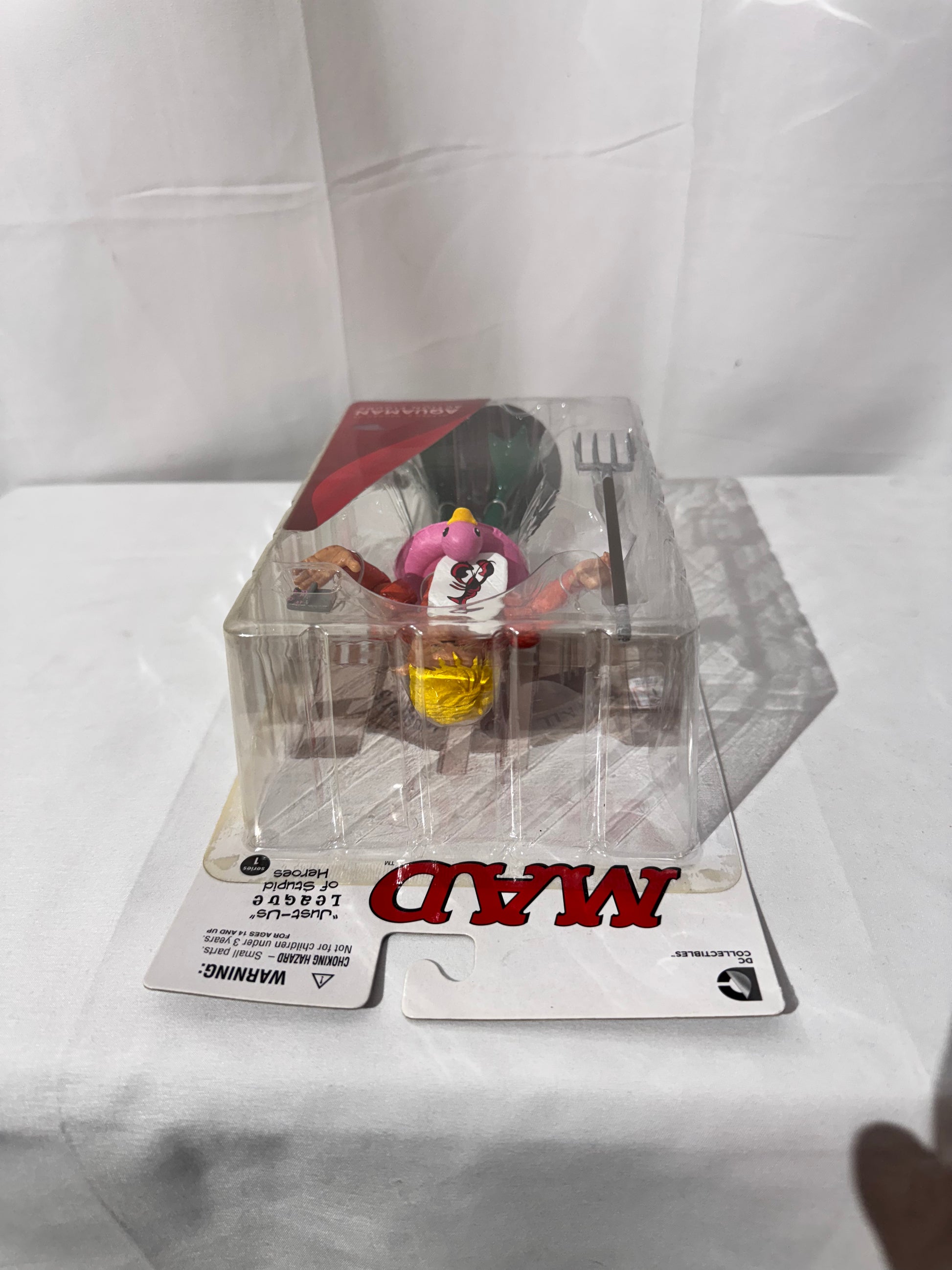 Up for sale is a fully poseable Alfred E. Neuman as Aquaman action figure, part of Series 1 of the “Just Us League of Stupid Heroes” collection from DC Collectibles. This figure combines MAD Magazine’s mascot with DC’s King of the Seven Seas, making it a quirky and fun addition to any collection.
