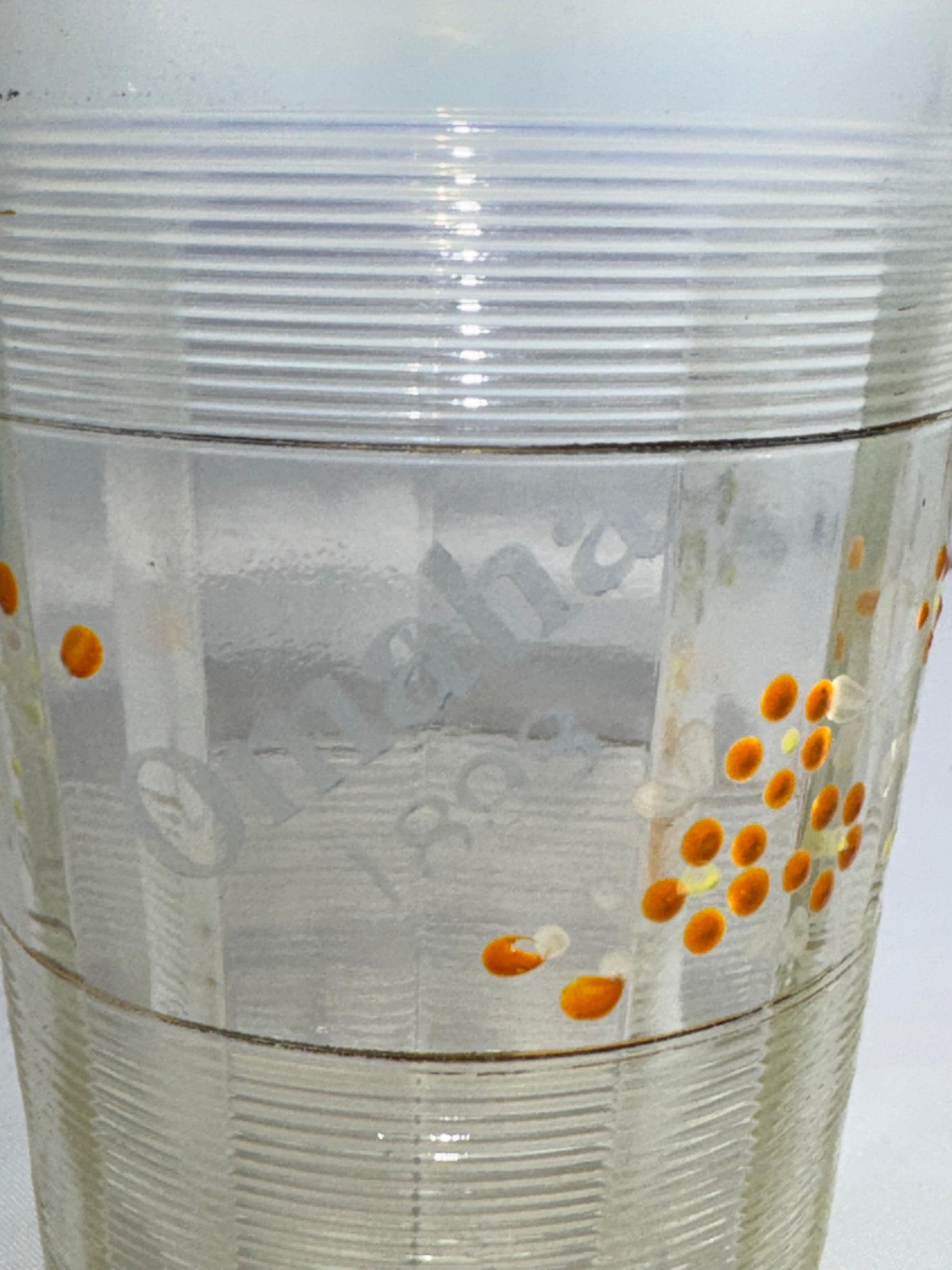 This tumbler is antique and previously owned. It may show light age-appropriate wear consistent with its age and has a small chip. Please review photos carefully for condition details.