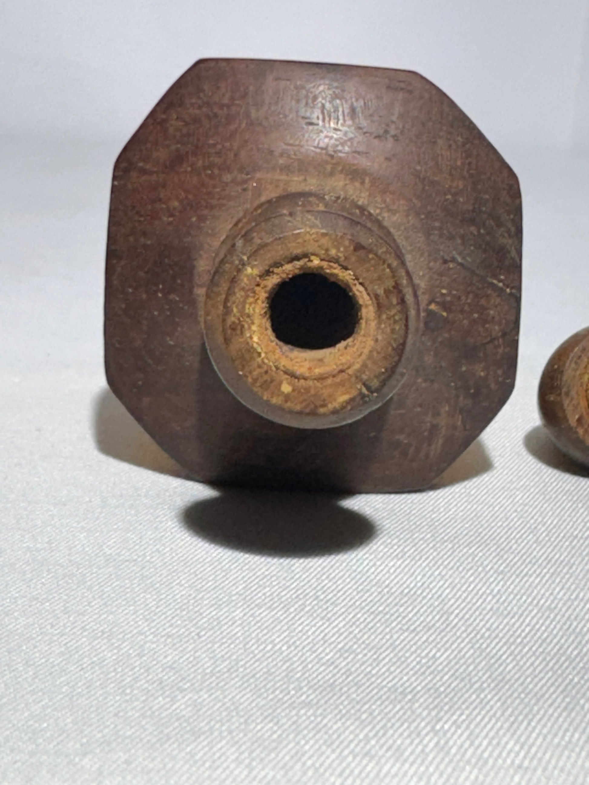 Antique Chinese Bovine Bone & Wood Snuff Bottle – Eight-Sided Hand-Painted Scrimshaw Erotic Scene