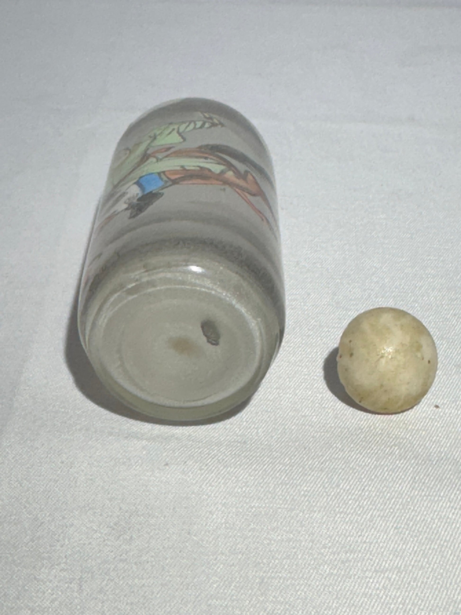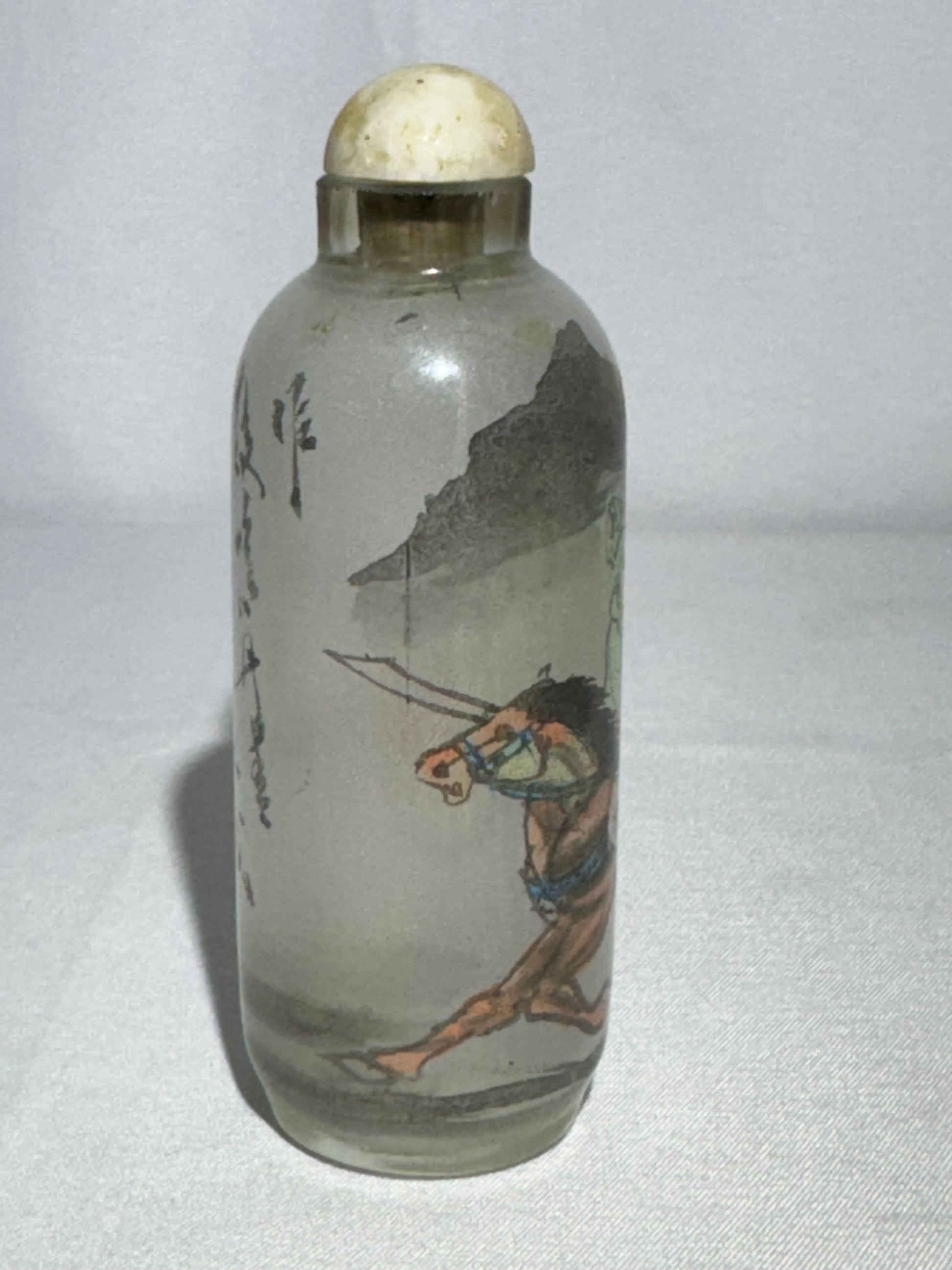 Antique Chinese Inside-Painted Snuff Bottle – Warrior on Horseback – Original Topper Included