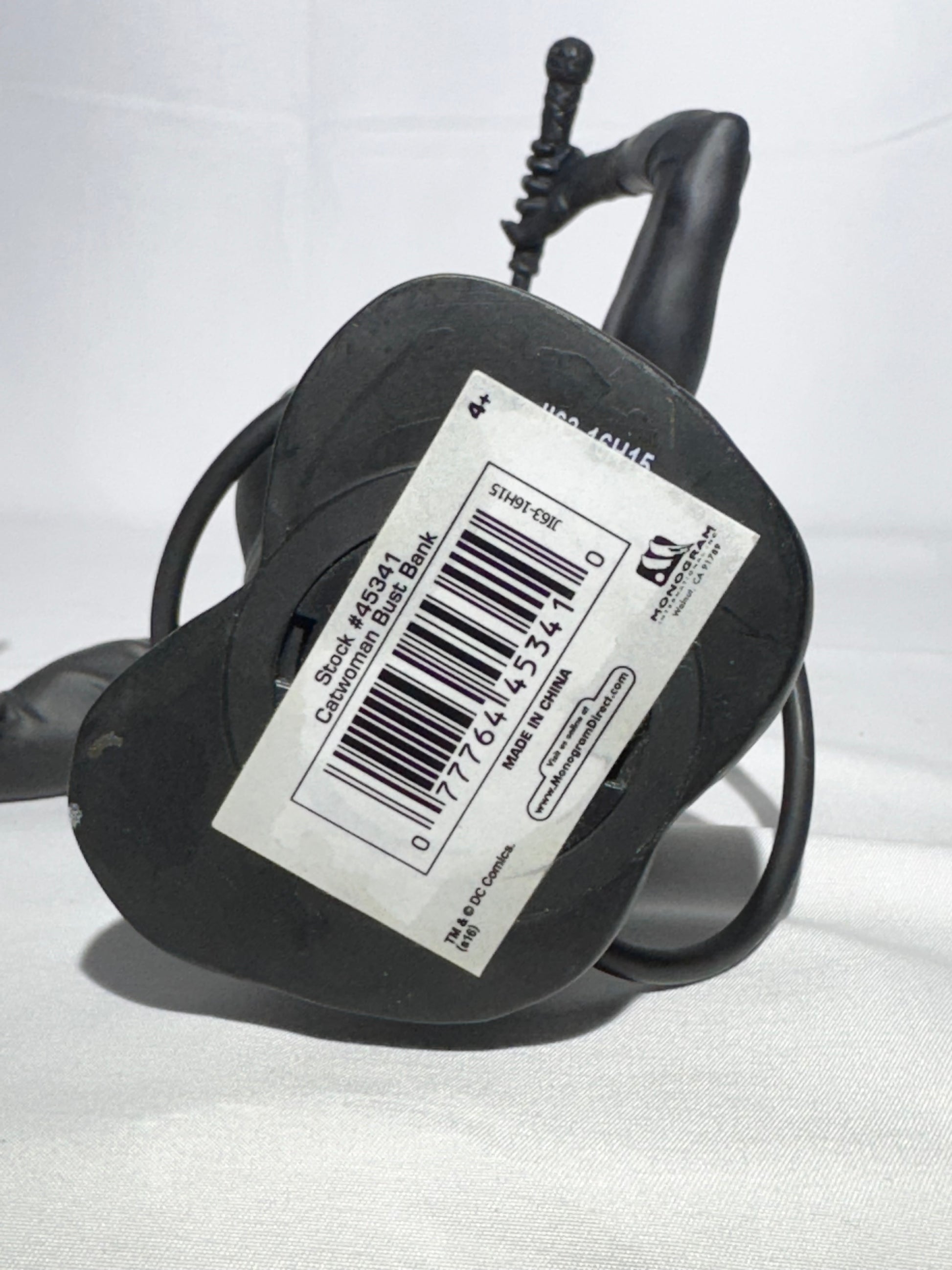This Catwoman bust bank is a striking piece for any DC Comics collection. Marked with stock number 45341, it features Catwoman with her signature whip wrapped elegantly around her body, showcasing great sculpted detail.