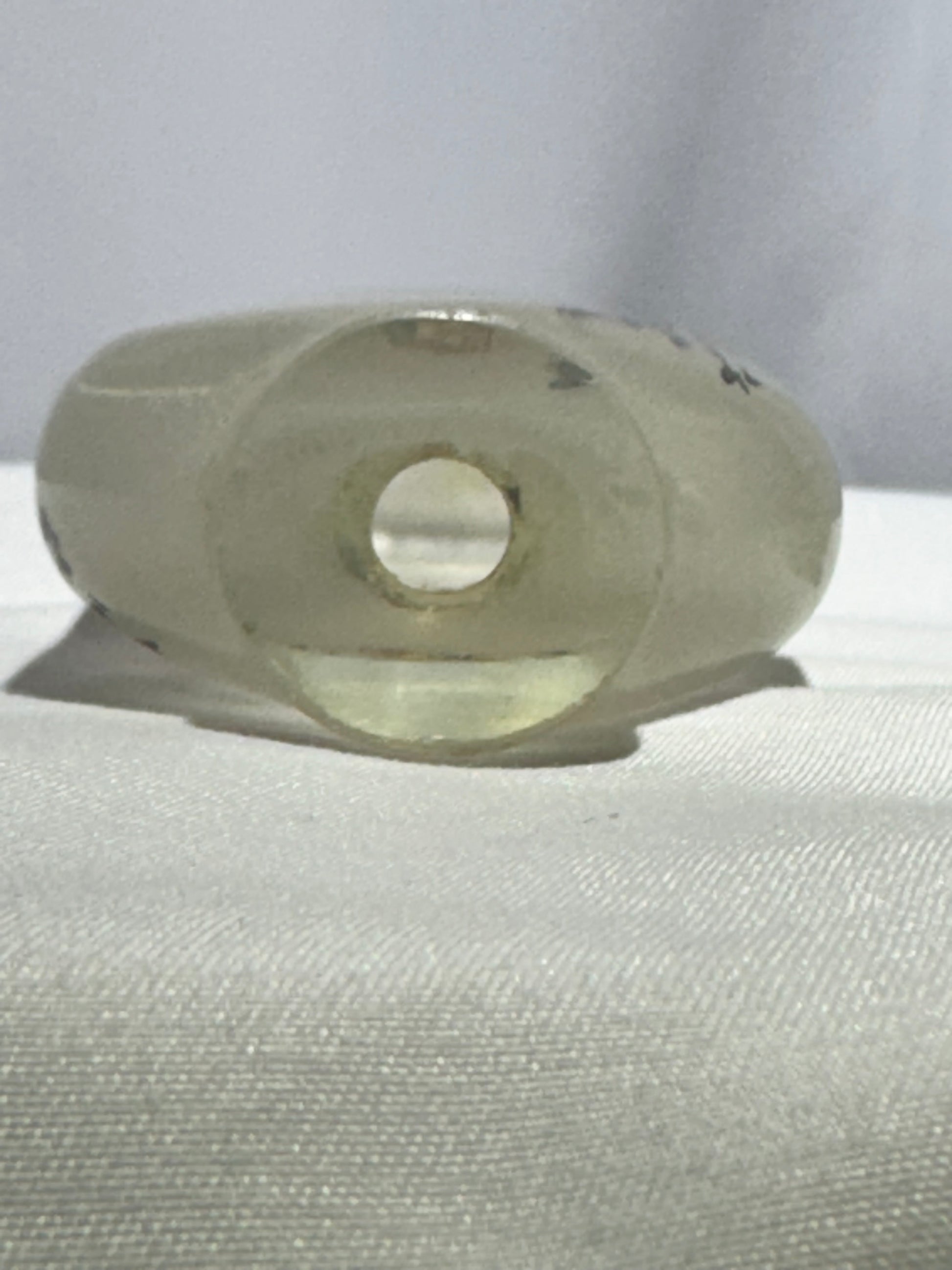 This beautiful Chinese snuff bottle features exquisite inside-painted artwork, a traditional craft that requires incredible skill and precision. The artwork is hand-painted and signed in red by the artist.