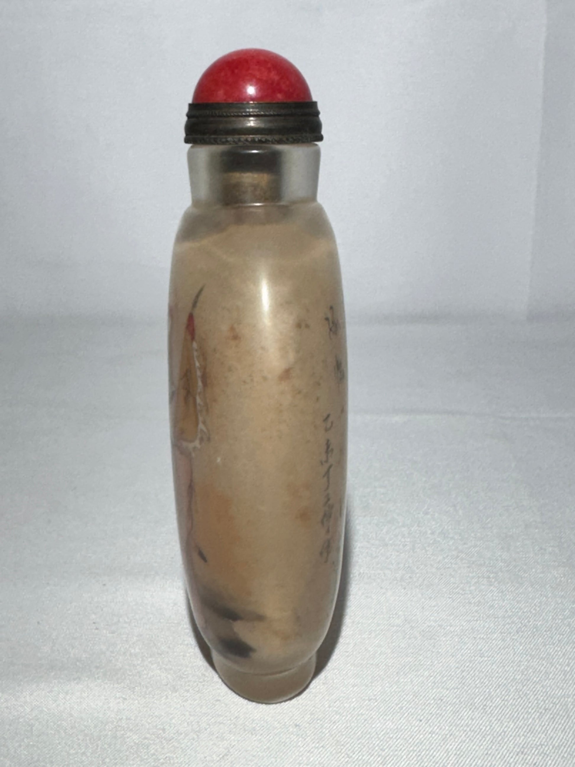 Chinese Old Beijing Glazed Inside-Painted Glass Snuff Bottle with Topper – Athletic Figure & Calligraphy Poem