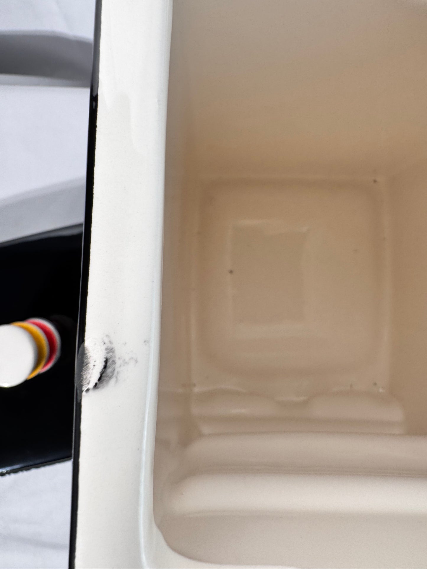 -Hand painted-Some imperfections on paint noted in pictures-No chips or cracks- Approximately measures 12 inches tall 7 inches wide 7 1/2 inches deep