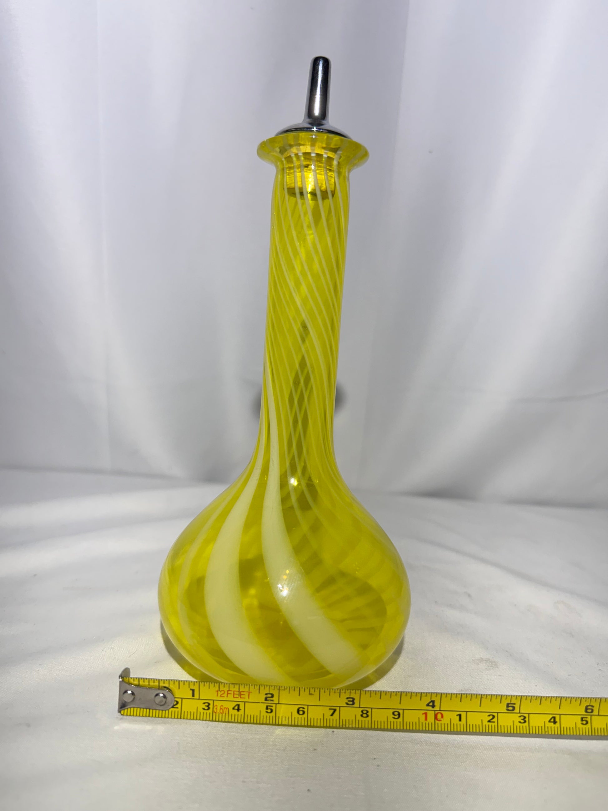 - Material: Yellow opalescent glass with white swirl design