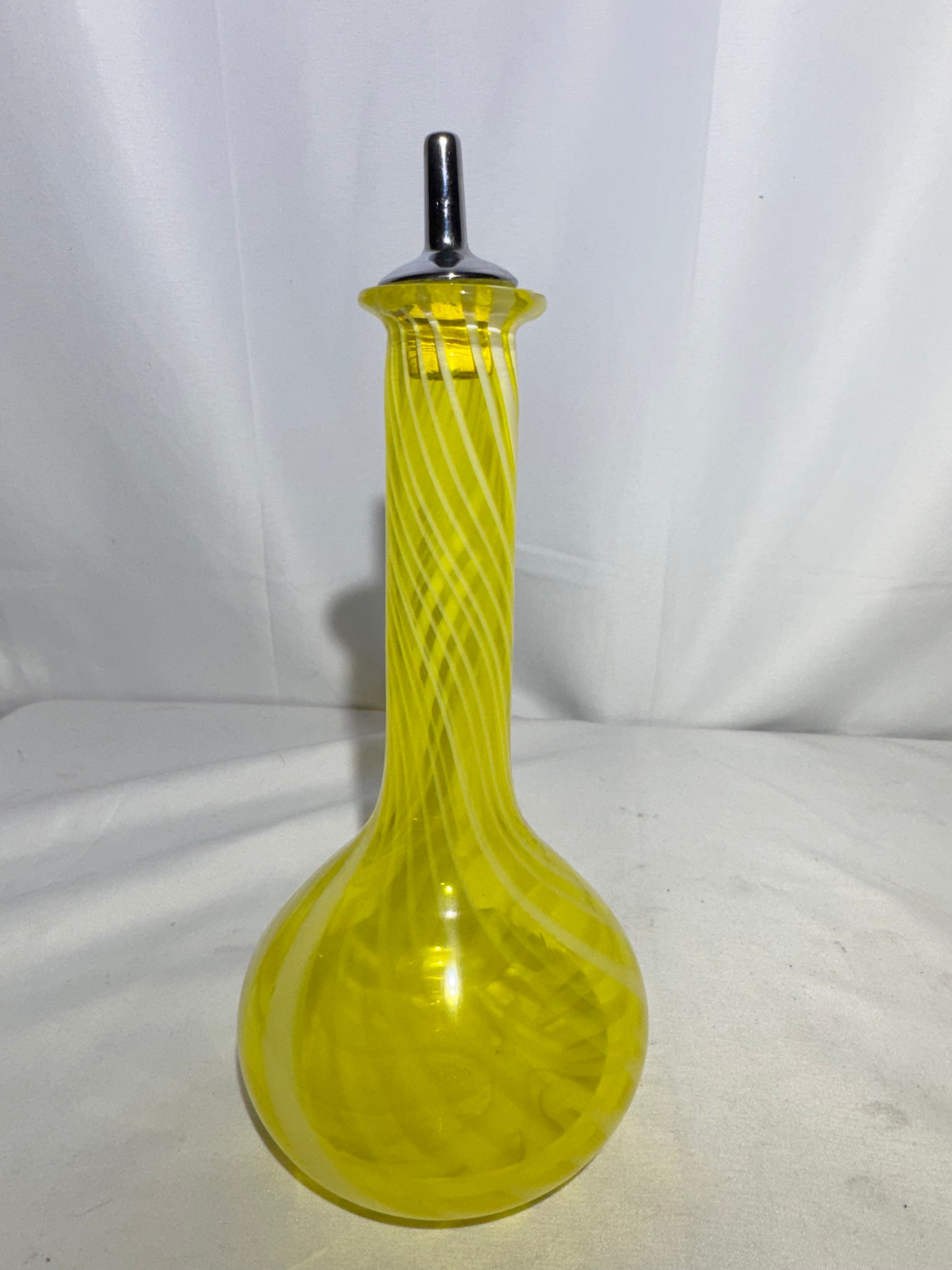 Collectible Victorian Yellow Opalescent Swirl Barber Bottle w/ Metal Stopper