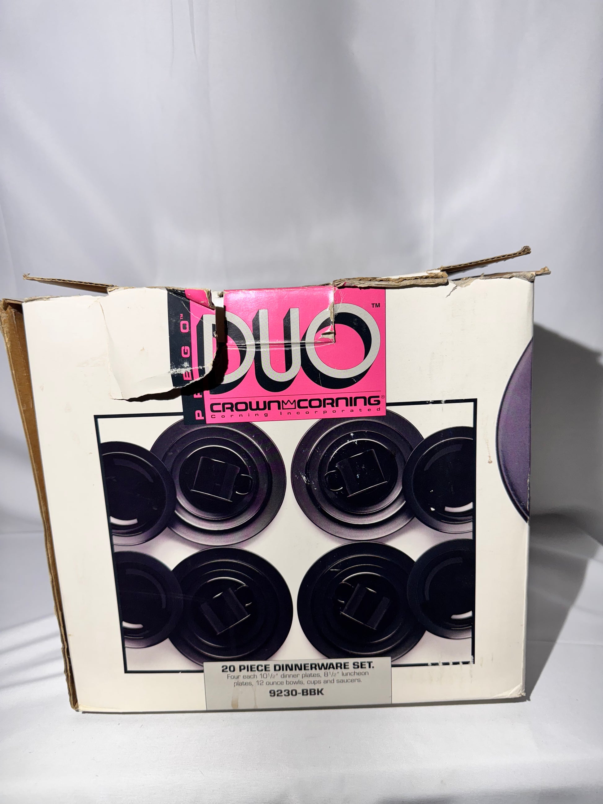 Add timeless elegance to your table with this Crown Corning 20-piece stoneware dinnerware set, model 9230-BBK. Crafted in Japan, this set features a sleek black finish that complements both modern and classic table settings.