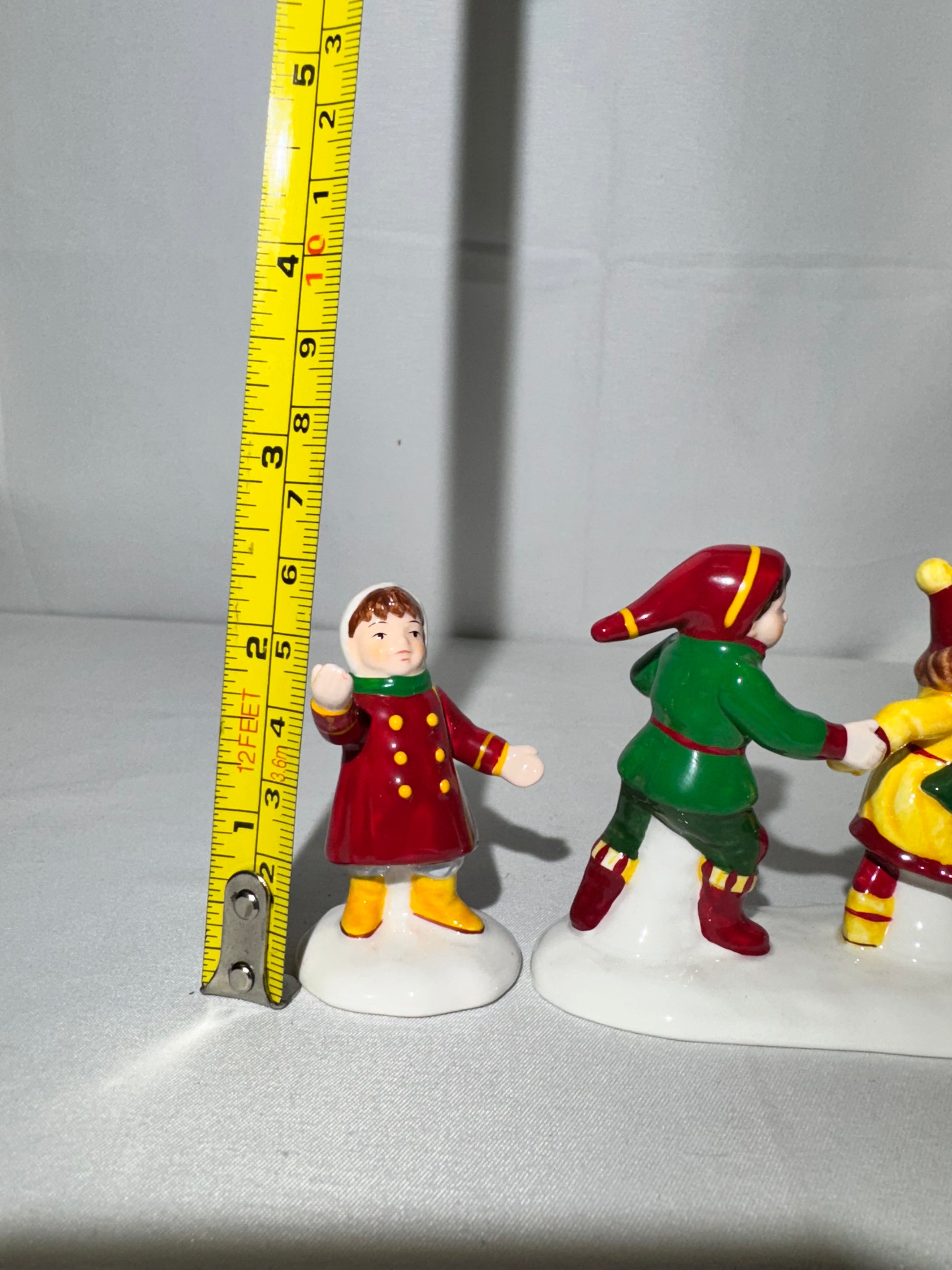 This delightful scene captures the magic of a winter parade through town, making it a perfect addition to any Snow Village setup or Department 56 collection.