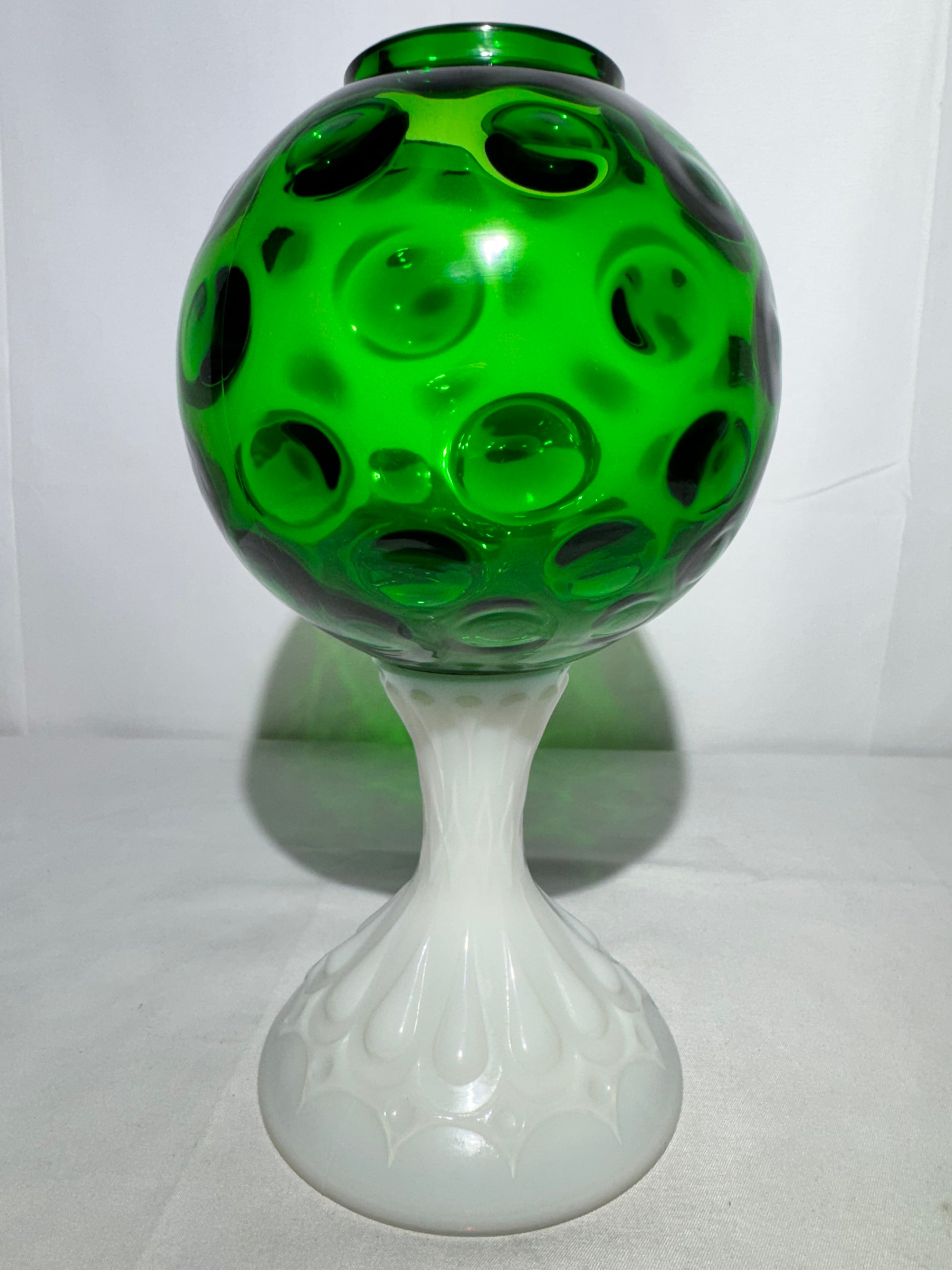 Fenton Coin Pedestal Ivory Ball Rose Bowl – Green & Milk Glass