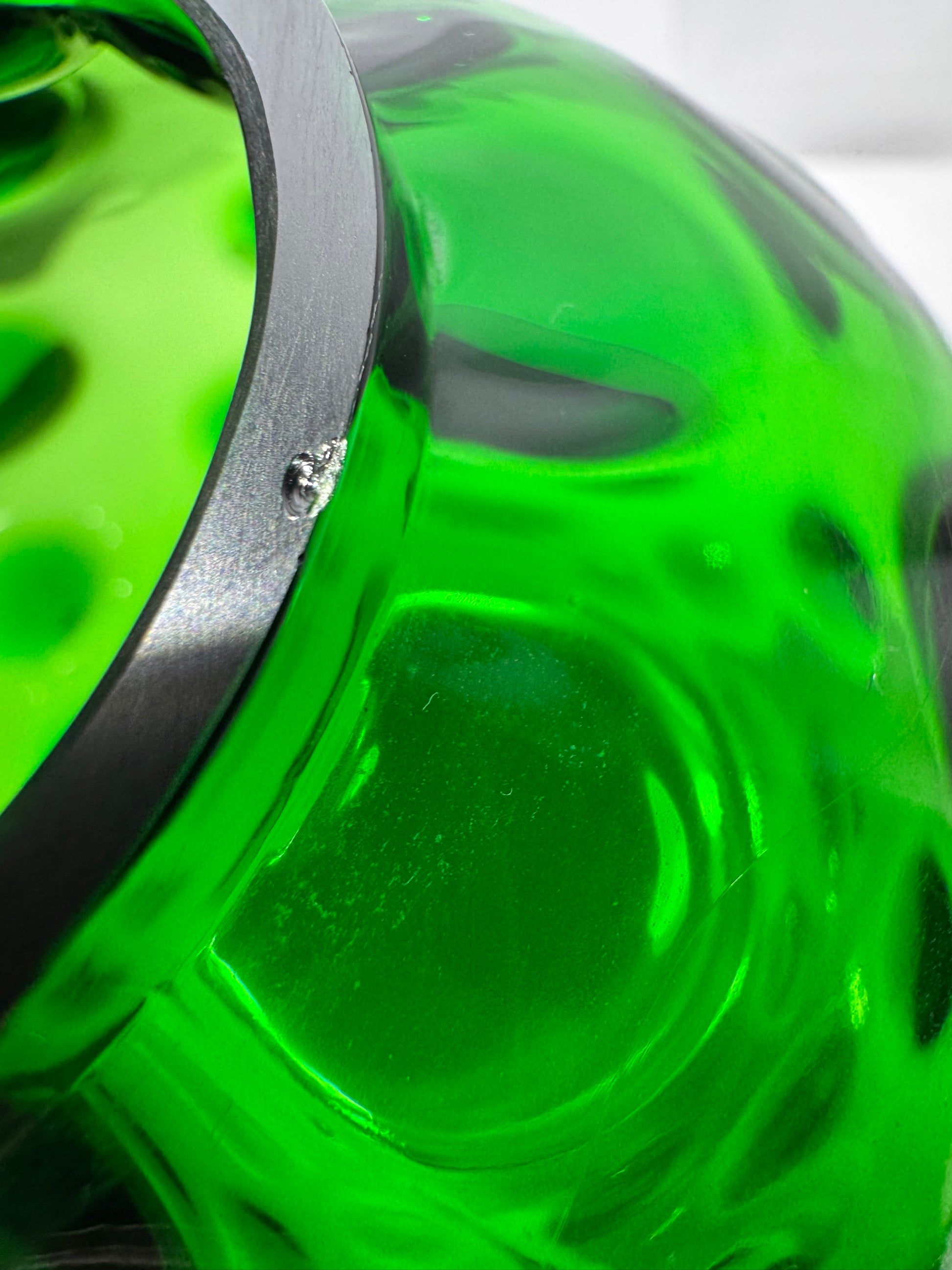 Add a touch of classic charm to your collection with this beautiful Fenton coin pedestal ivory ball rose bowl. This striking piece features a soothing blend of green and milk glass, showcasing Fenton’s signature craftsmanship and elegant style.