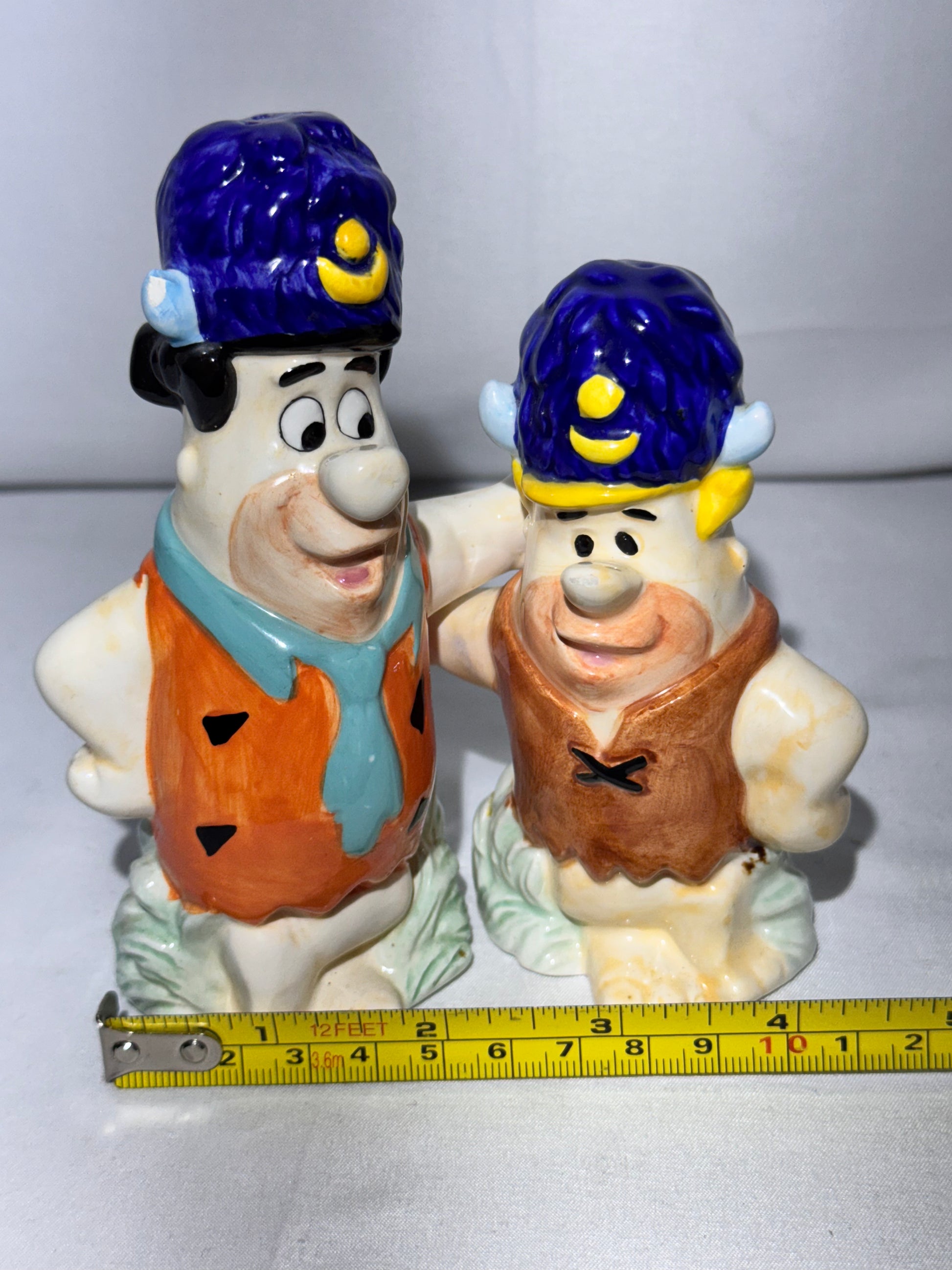 Fred Flintstone and Barney Rubble - Salt and Pepper - Hanna Barbera- Cartoon - Water Buffalos - Barney has paint chip on nose