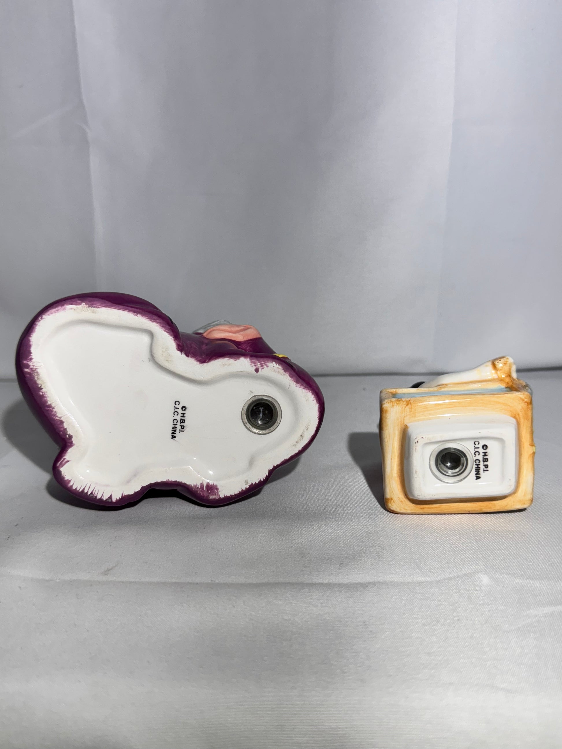 Bring some prehistoric fun to your kitchen with this charming Fred Flintstone and Dino salt and pepper shaker set! This vintage set features Fred working on Dino’s back, picking up rocks, perfectly capturing the playful spirit of the classic Hanna-Barbera cartoon.