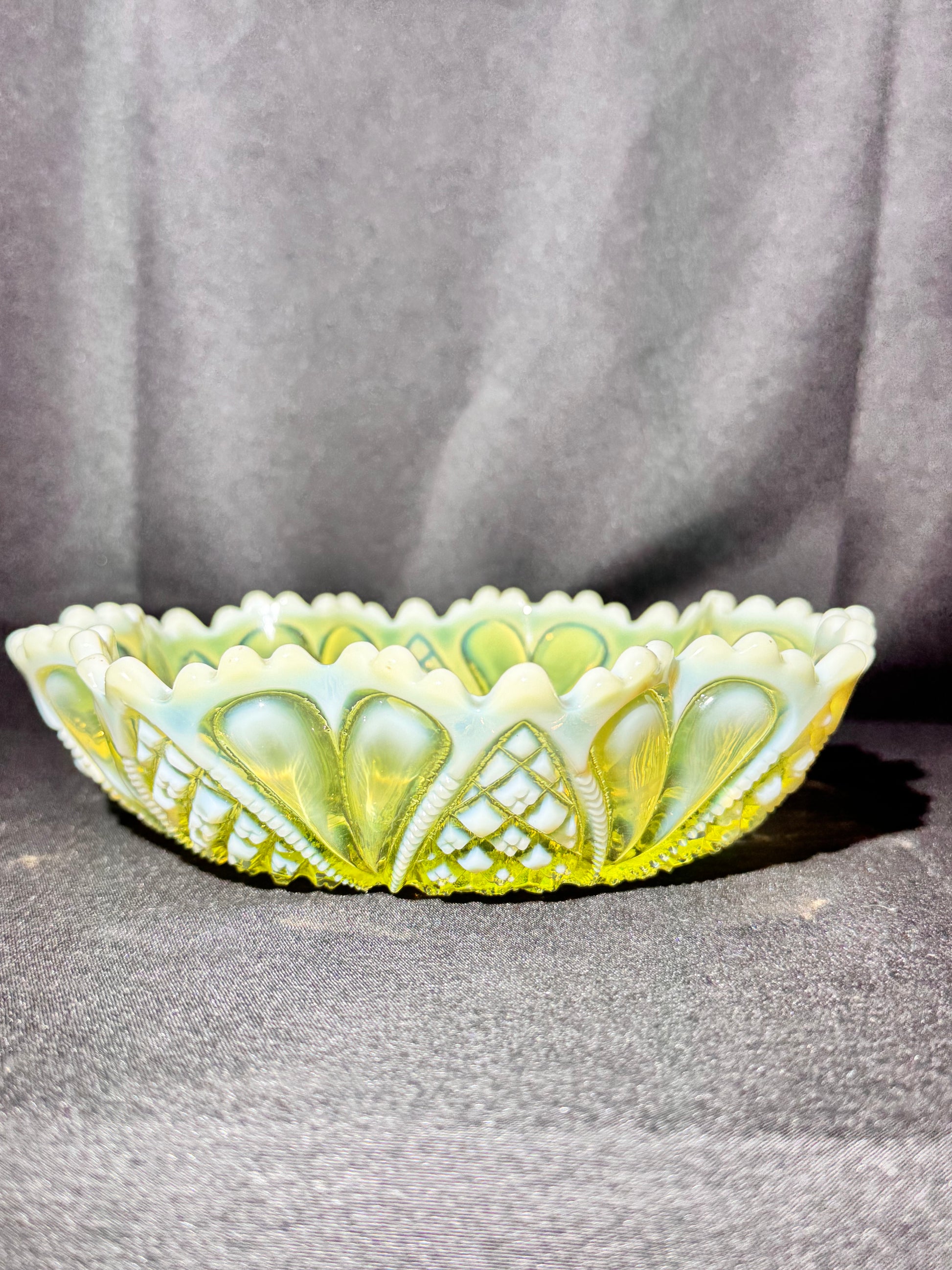 George Davidson “William & Mary” Pattern 7″ round Bowl / Candy Dish — Uranium Adolescent Pearline