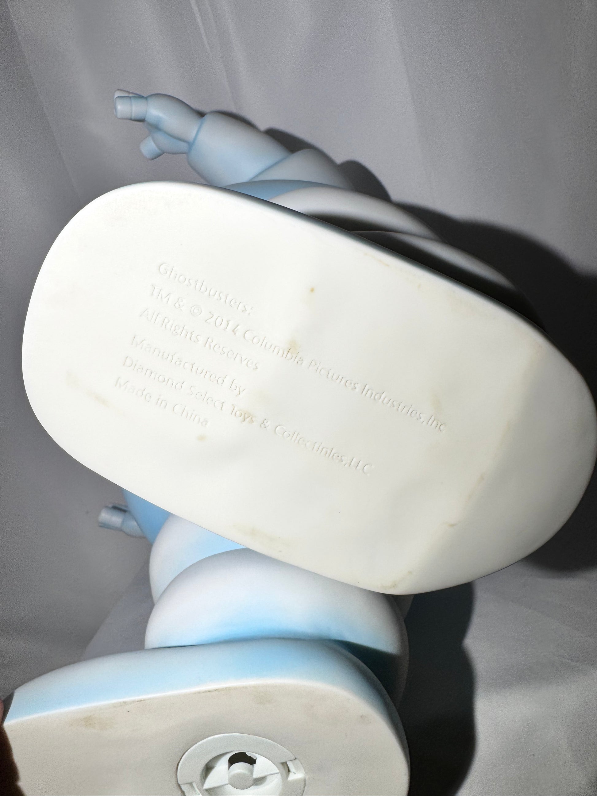 This is an oversized Stay Puft Marshmallow Man piggy bank from Ghostbusters, manufactured in 2014 by Diamond Select Toys and Collectibles. Standing at an impressive 22 inches tall, this bank is both a functional coin holder and a must-have display piece for Ghostbusters fans and collectors.
