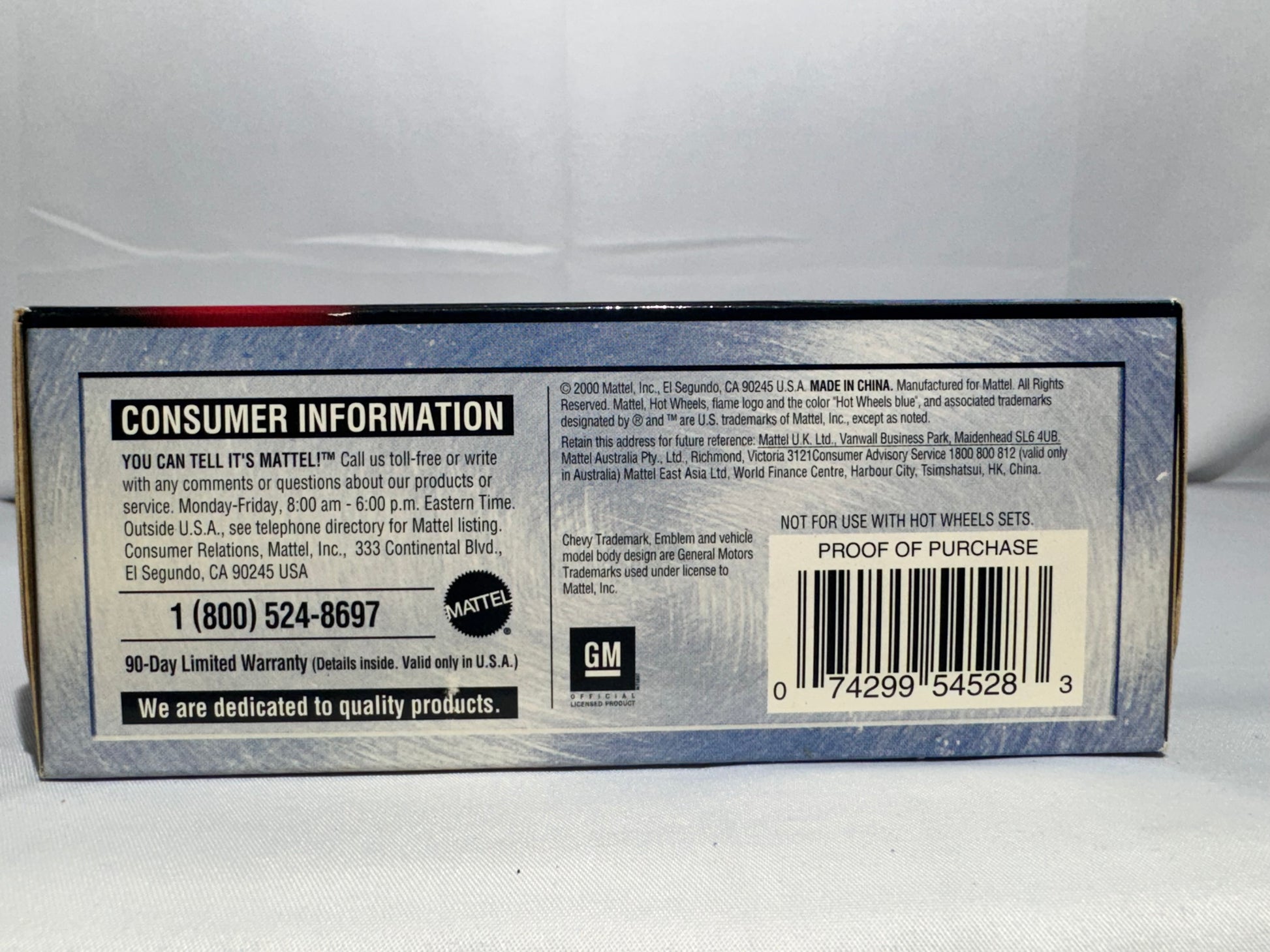 The vehicle displays beautifully, while the original display case may show minimal wear consistent with age. A great addition for Hot Wheels collectors, classic Chevy enthusiasts, or fans of branded Hot Wheels designs.