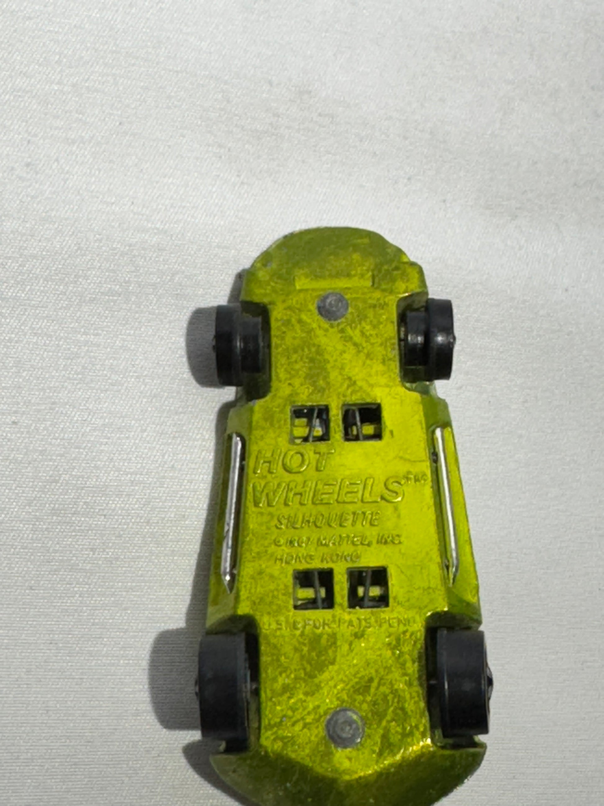 Available is an original 1968 Hot Wheels Redline Silhouette, part of the legendary Sweet 16 release. This car features the eye-catching antifreeze green finish—a highly recognizable early Hot Wheels color—with the signature bubble-top design.