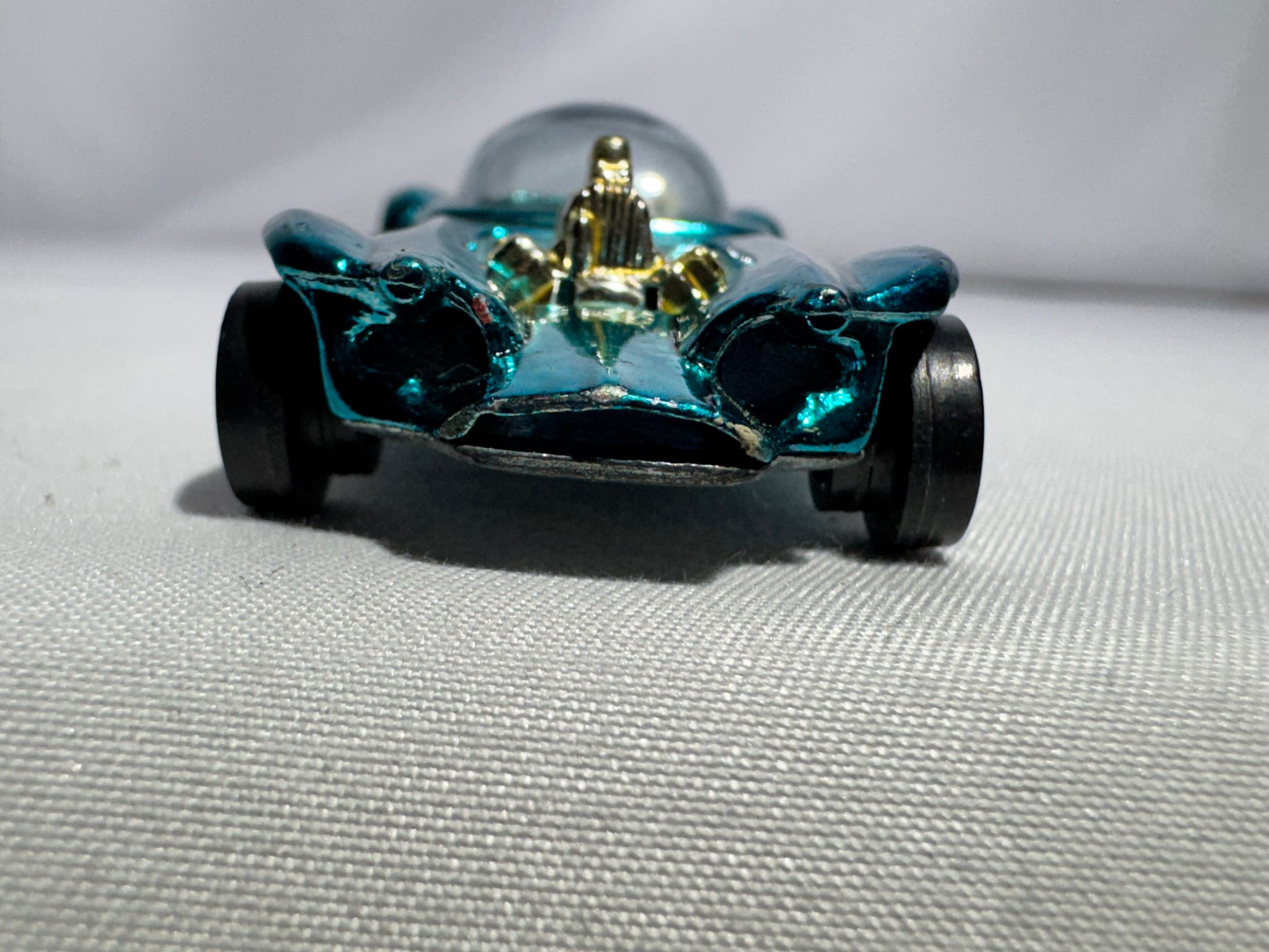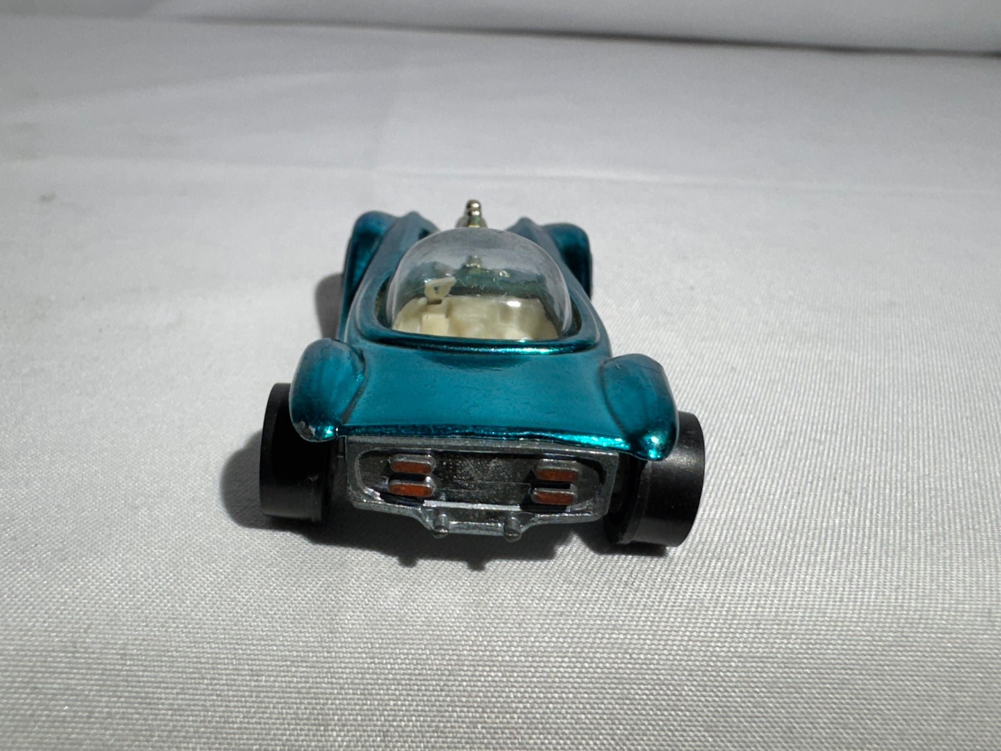 The casting debuted in 1968, and this piece appears to be one of the vintage originals from that period. It comes in the desirable aqua/teal Spectraflame finish, showcasing the unique bubble-top design that made this model iconic.