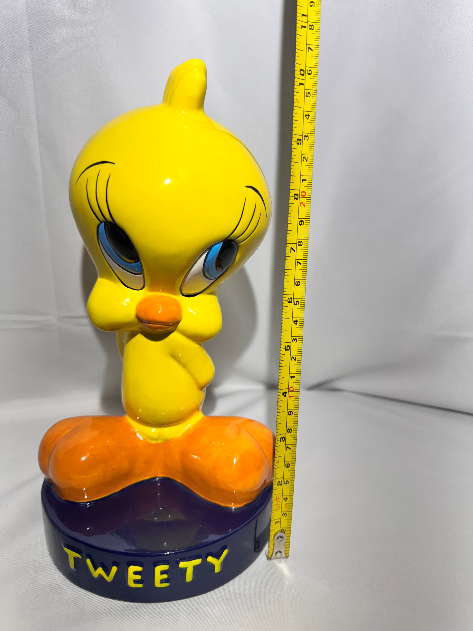 Perfect for Looney Tunes fans, Tweety collectors, or vintage piggy bank enthusiasts, this piece makes a charming display item or nostalgic gift.