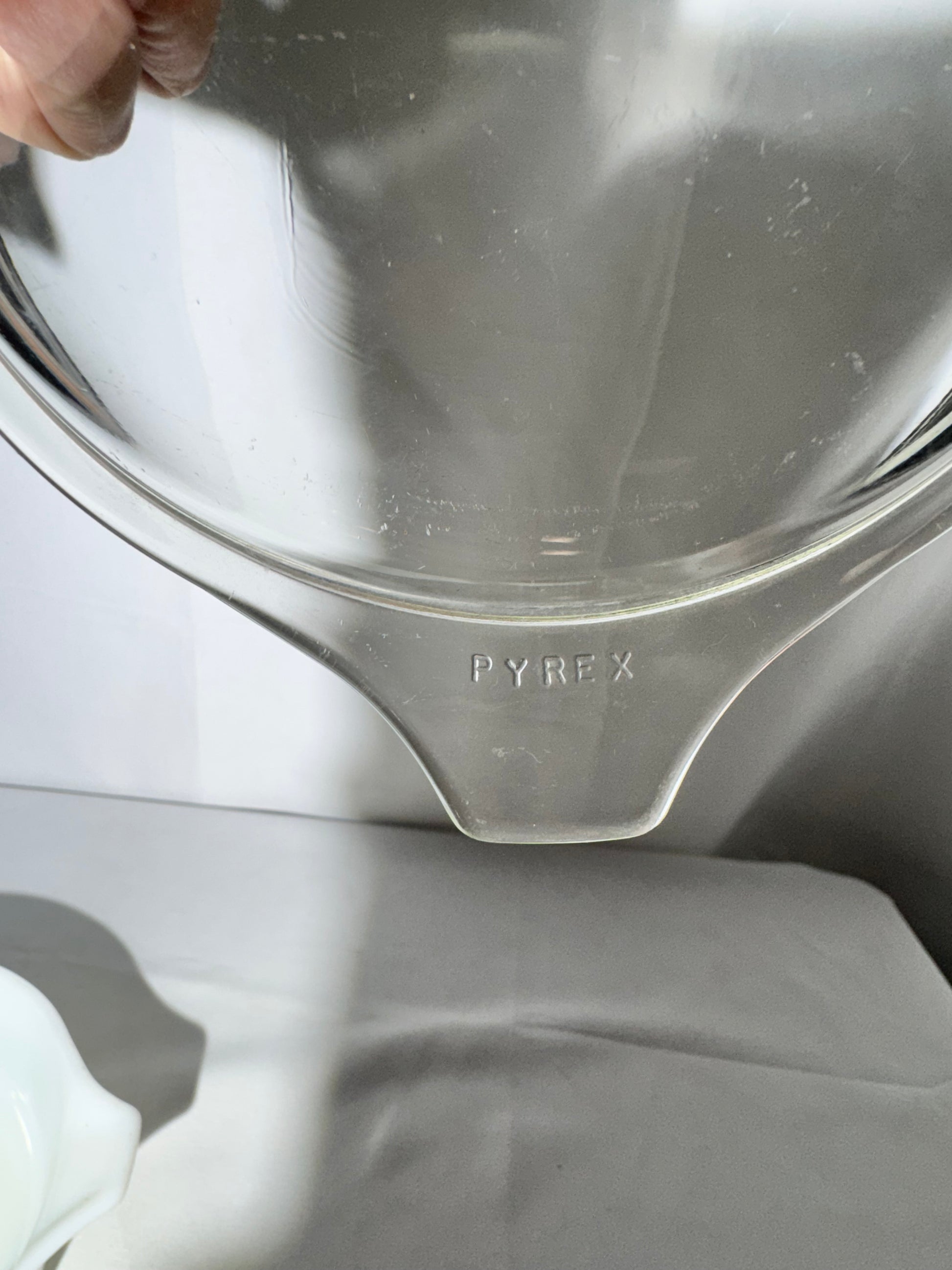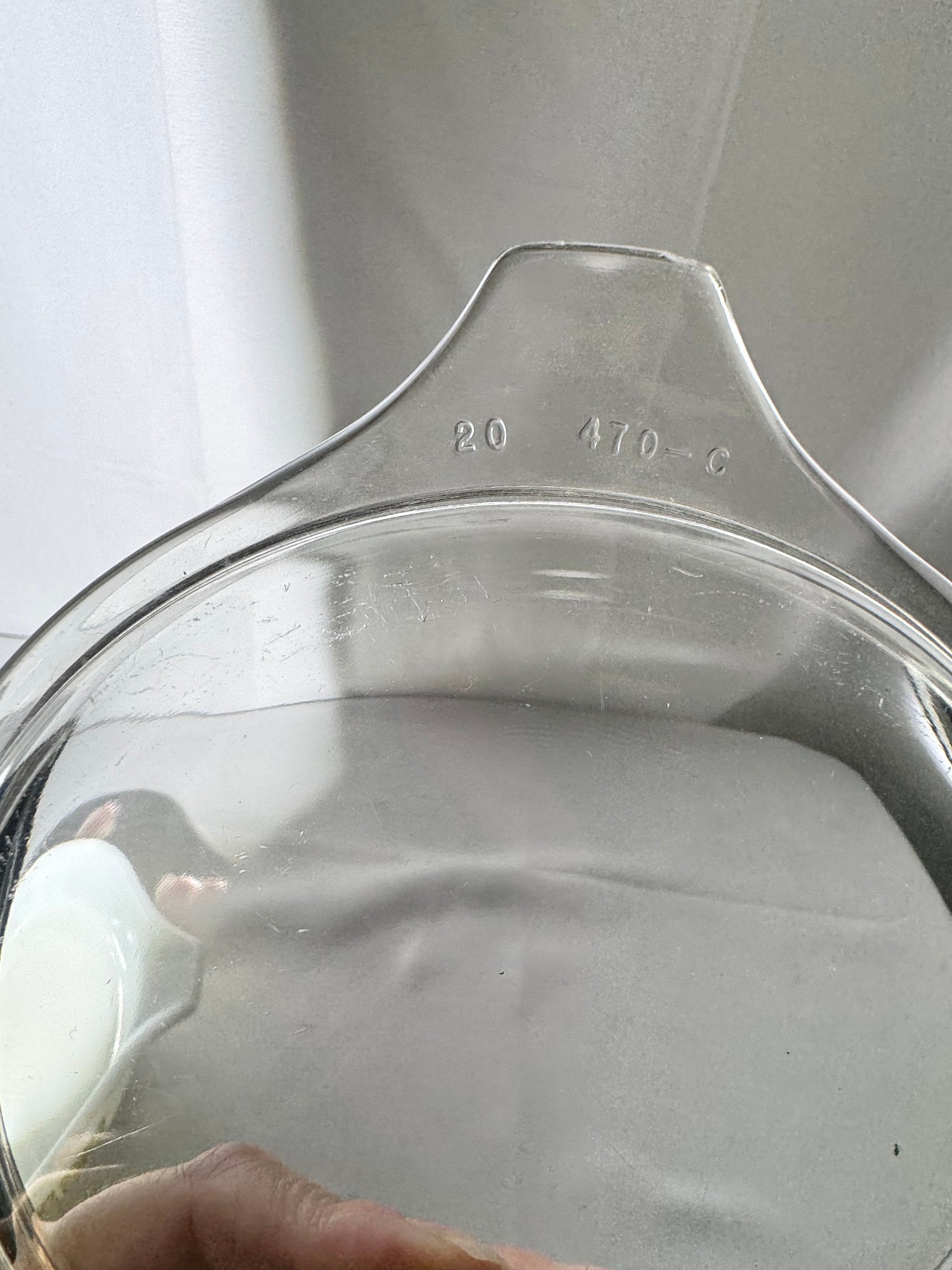 This vintage Pyrex 471 dish comes with its matching 470C lid and features the classic Verde Square Flower pattern. The milk-white base paired with the green floral design gives it that iconic mid-century look collectors love.