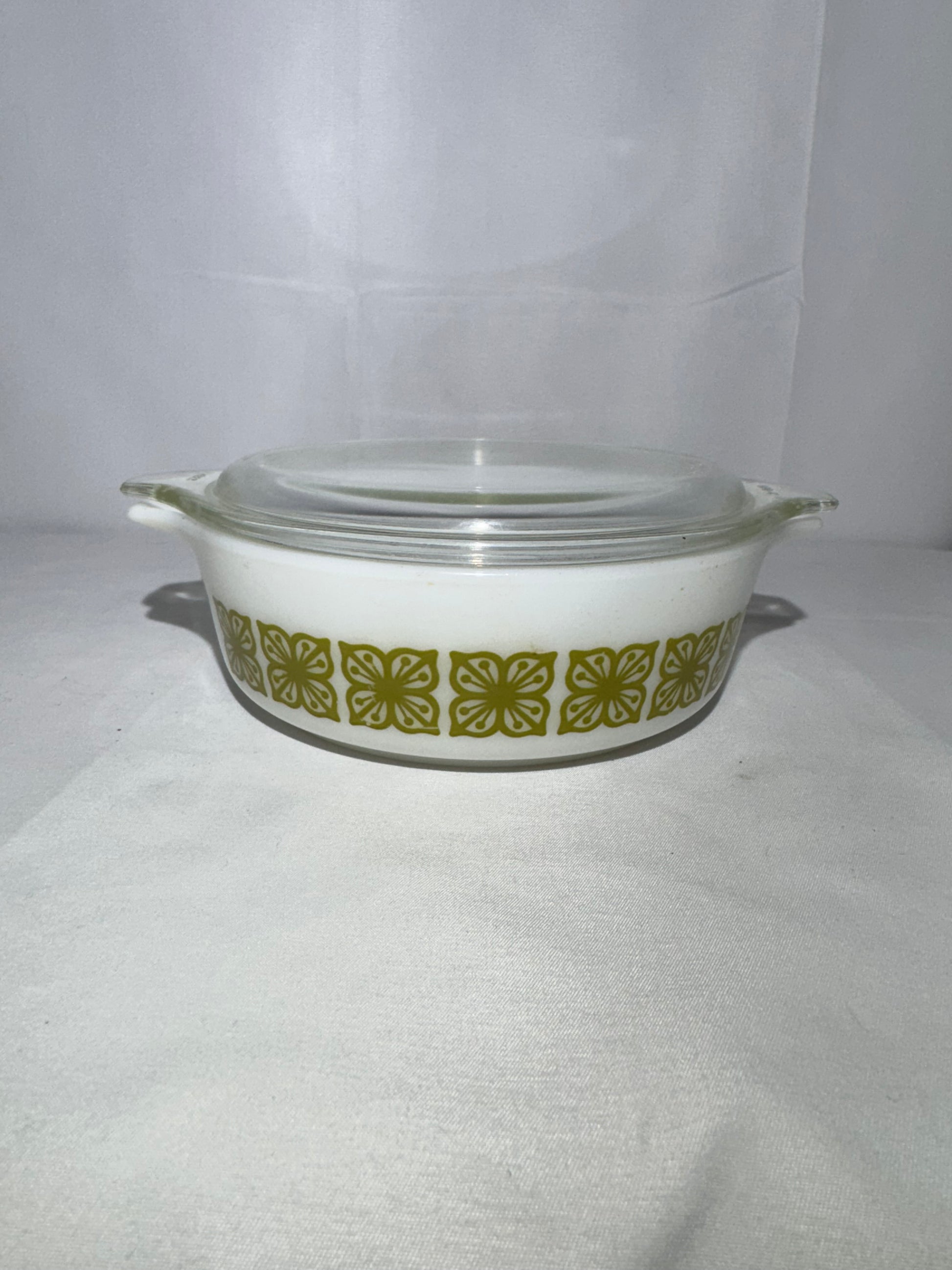 Pyrex 471 – 1 Pint Dish with Lid (470C) – Verde Square Flower Pattern