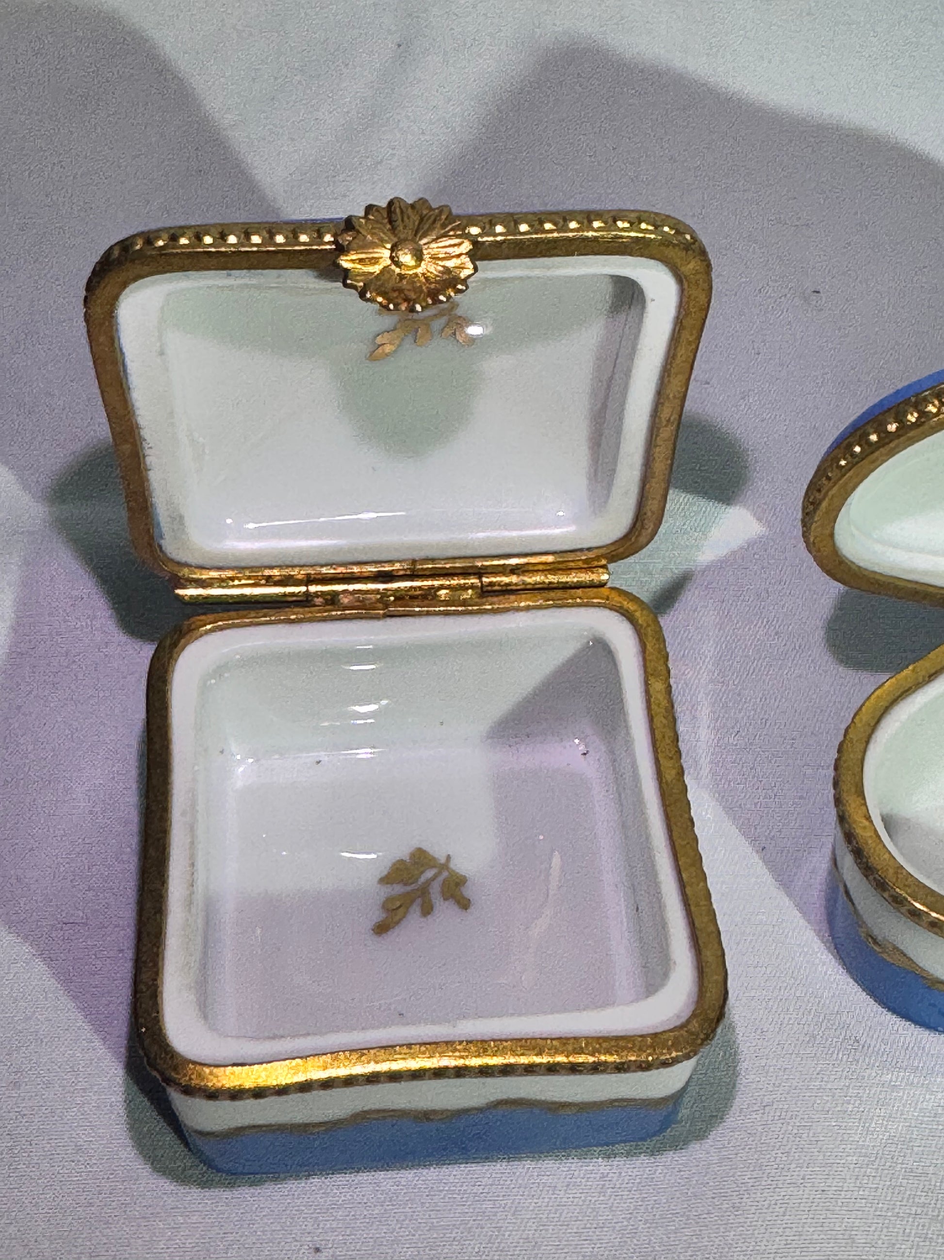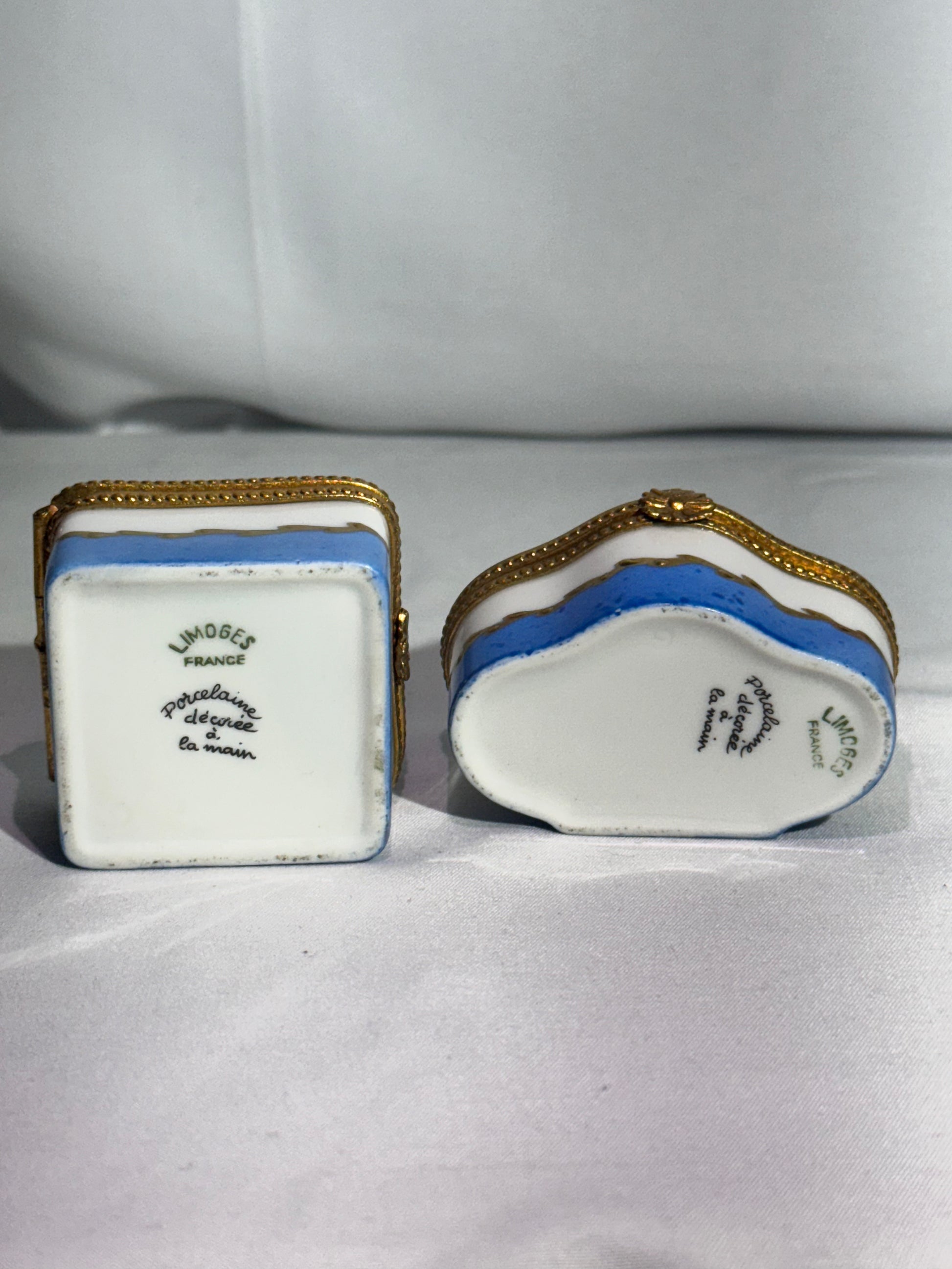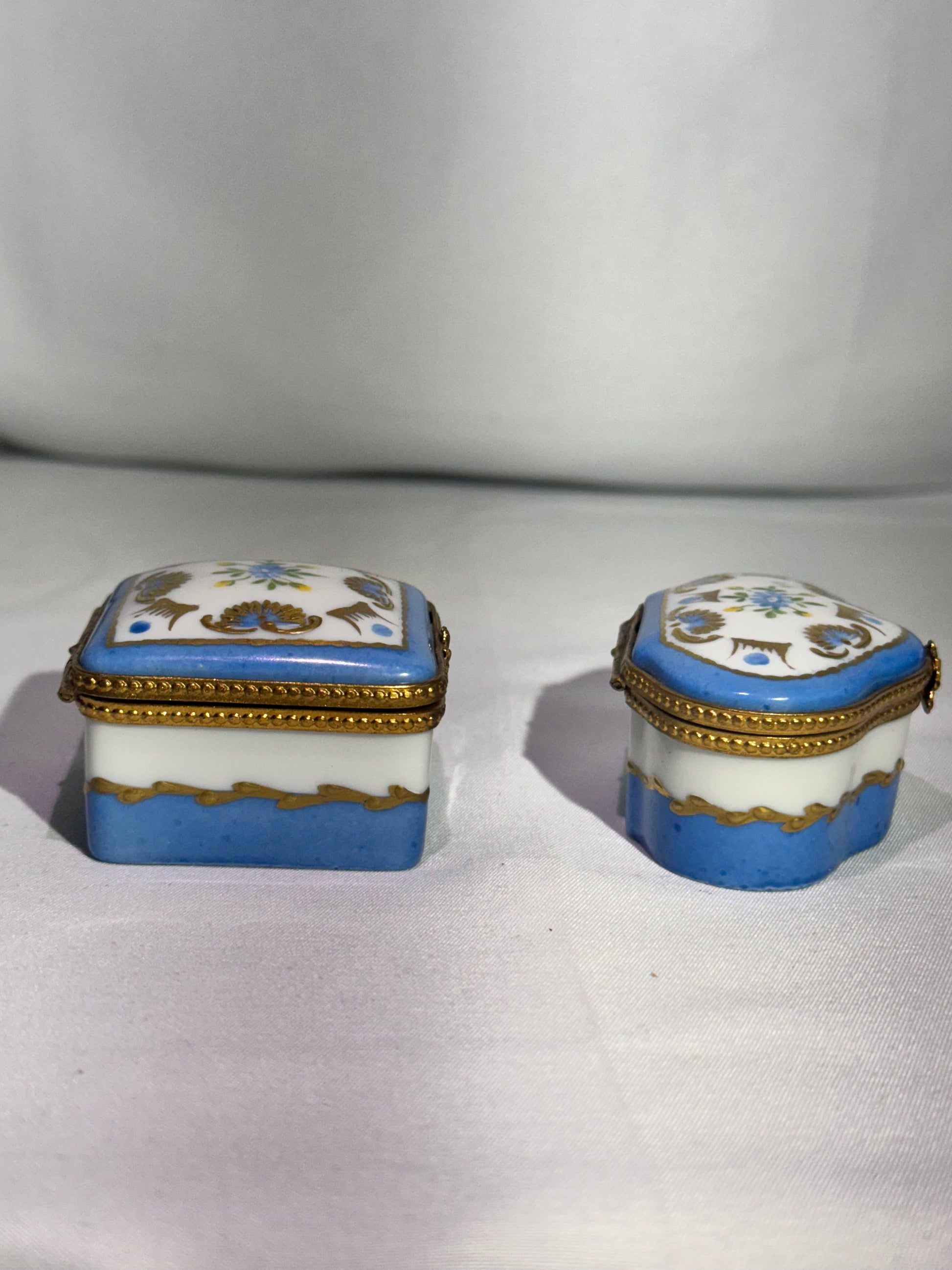 Set of 2 Limoges France Hand-Painted Porcelain Trinket Boxes – Blue, White & Gold