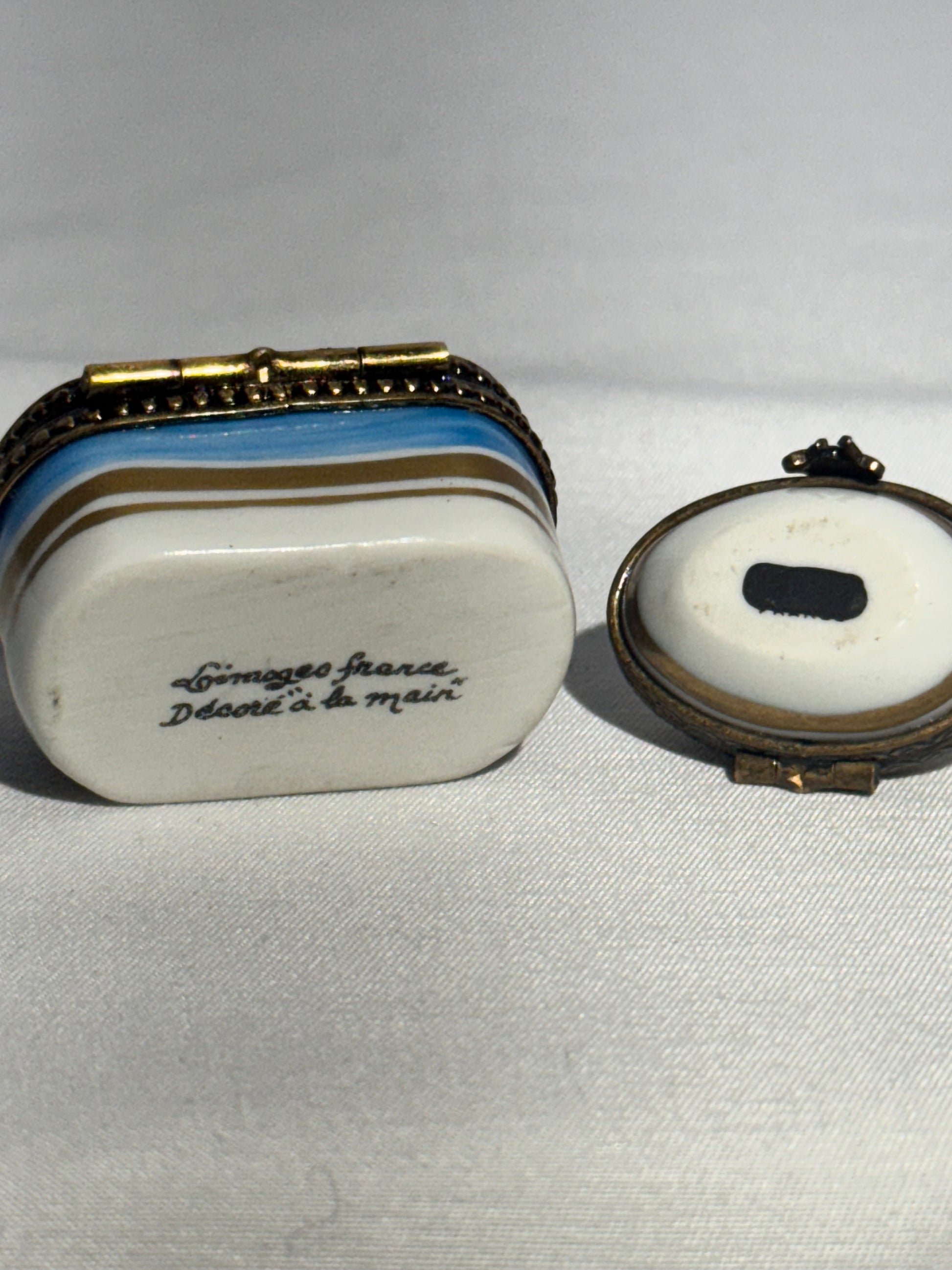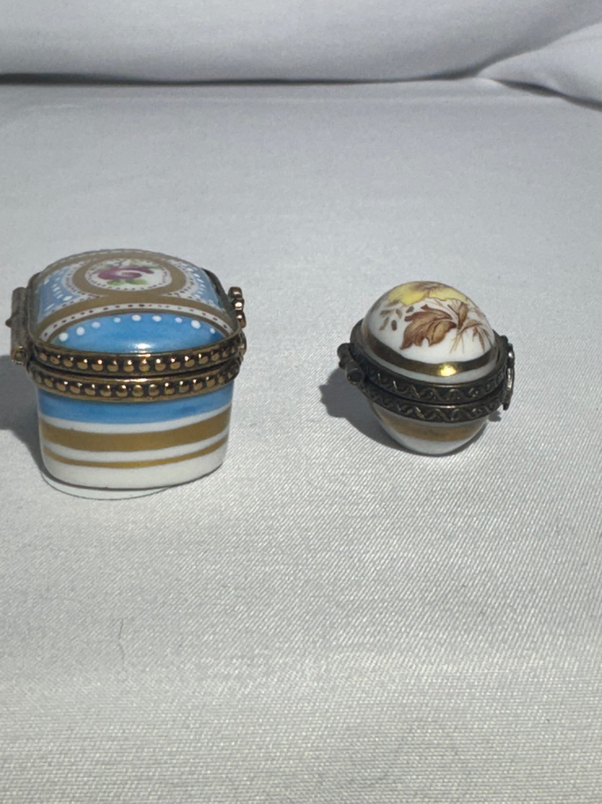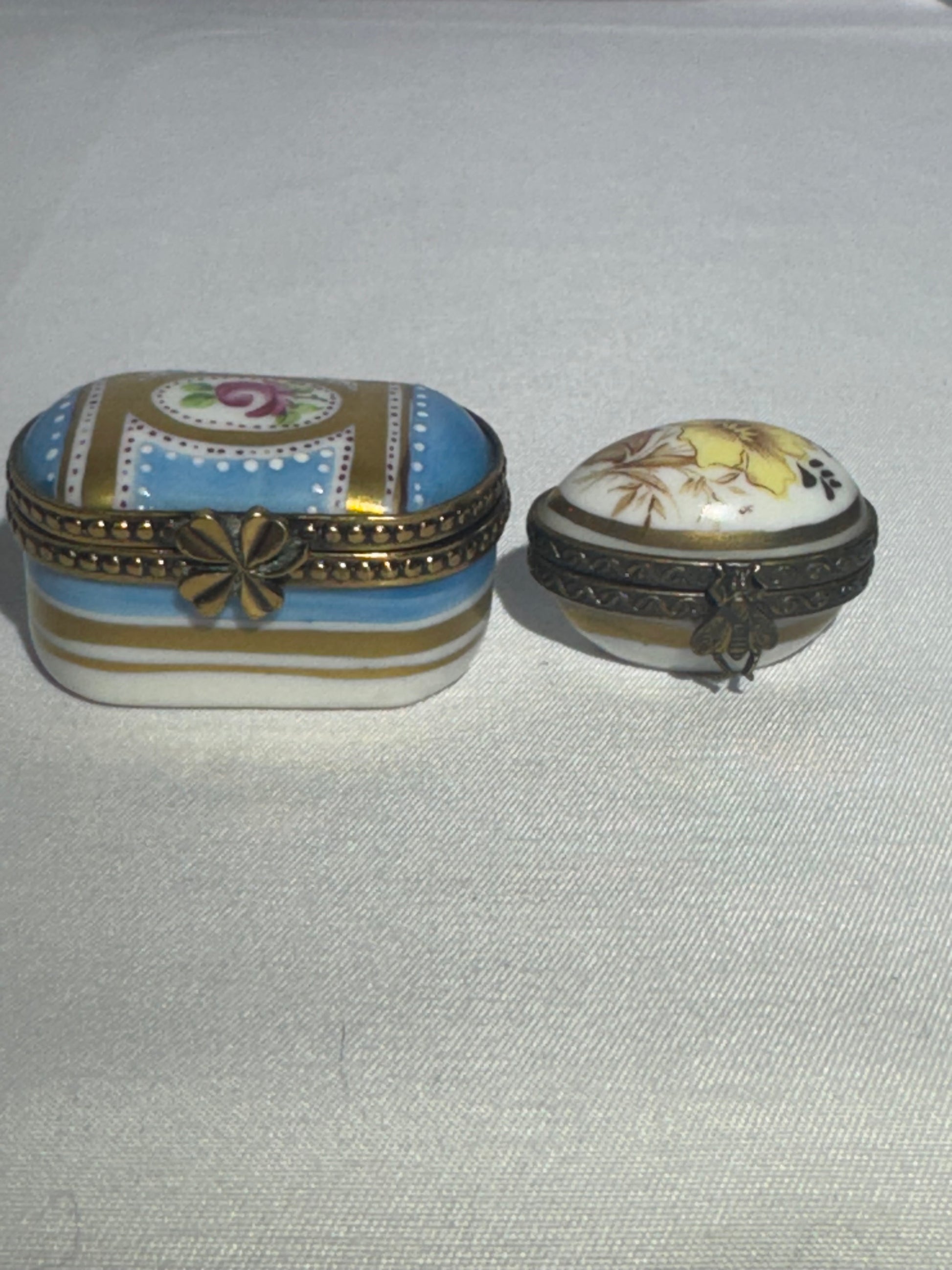 Set of 2 Limoges France Style Porcelain Trinket Boxes – Oval & Egg Shaped