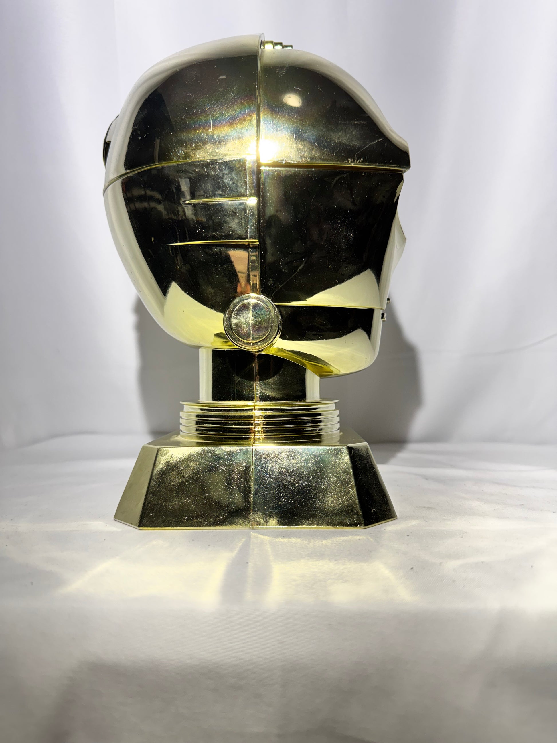 This striking jar features the iconic protocol droid C-3PO, rendered with a gold-plated chrome-style finish and sculpted in the shape of his head. While originally designed as a functional cookie jar, many collectors choose to display it as a decorative centerpiece.