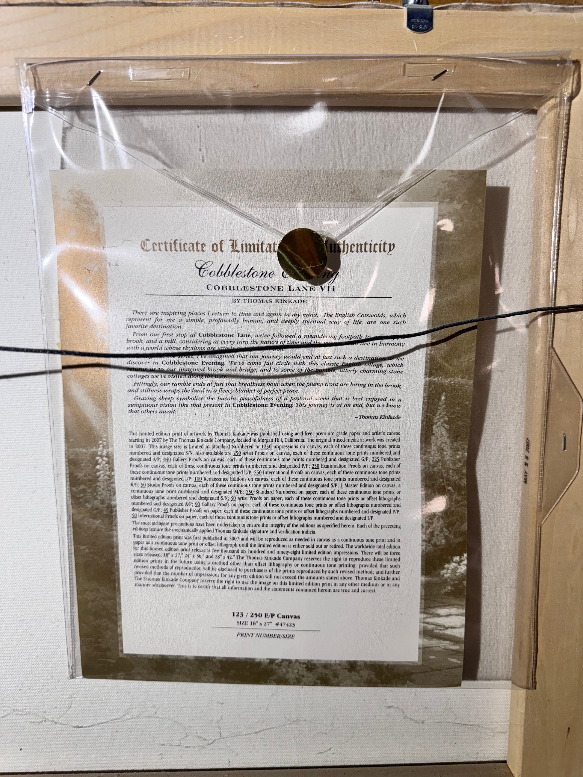 Thomas Kinkade “Cobblestone Lane VII” – Limited Edition Famed Canvas