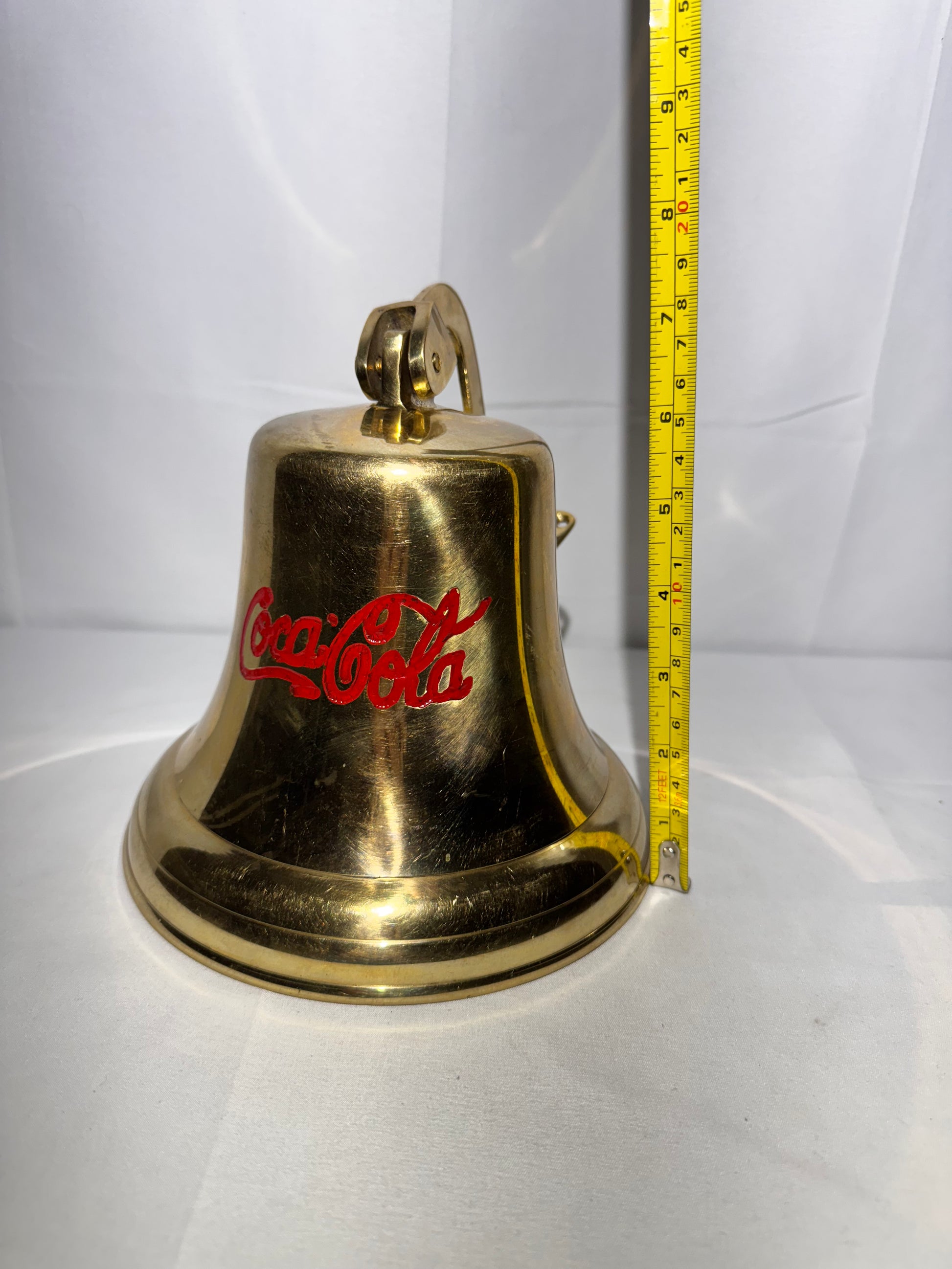 Add a touch of classic charm to your collection with this vintage brass Coca-Cola bell. This piece features a sturdy wall-mount bracket and a braided pull handle, giving it a timeless nostalgic look.