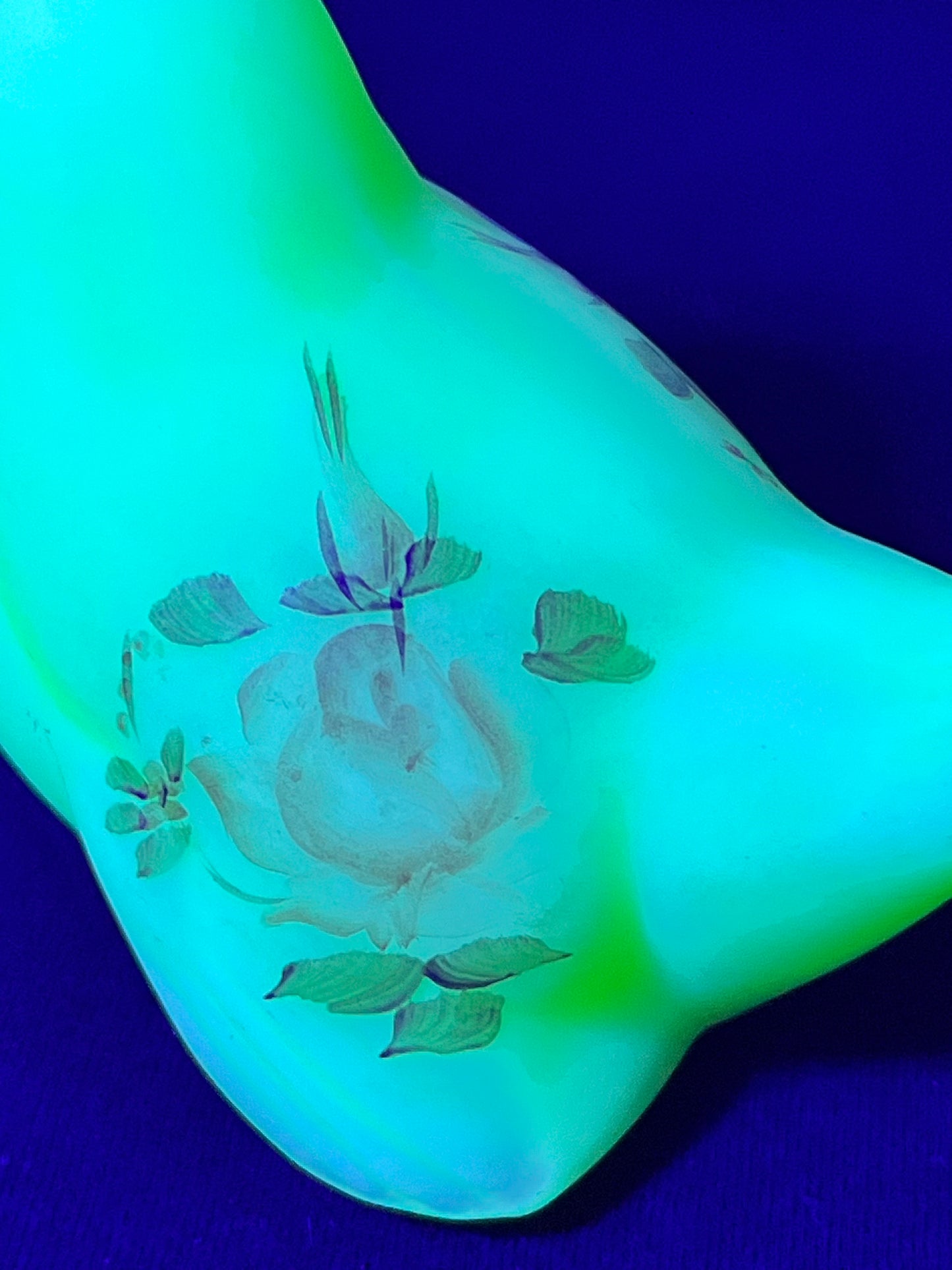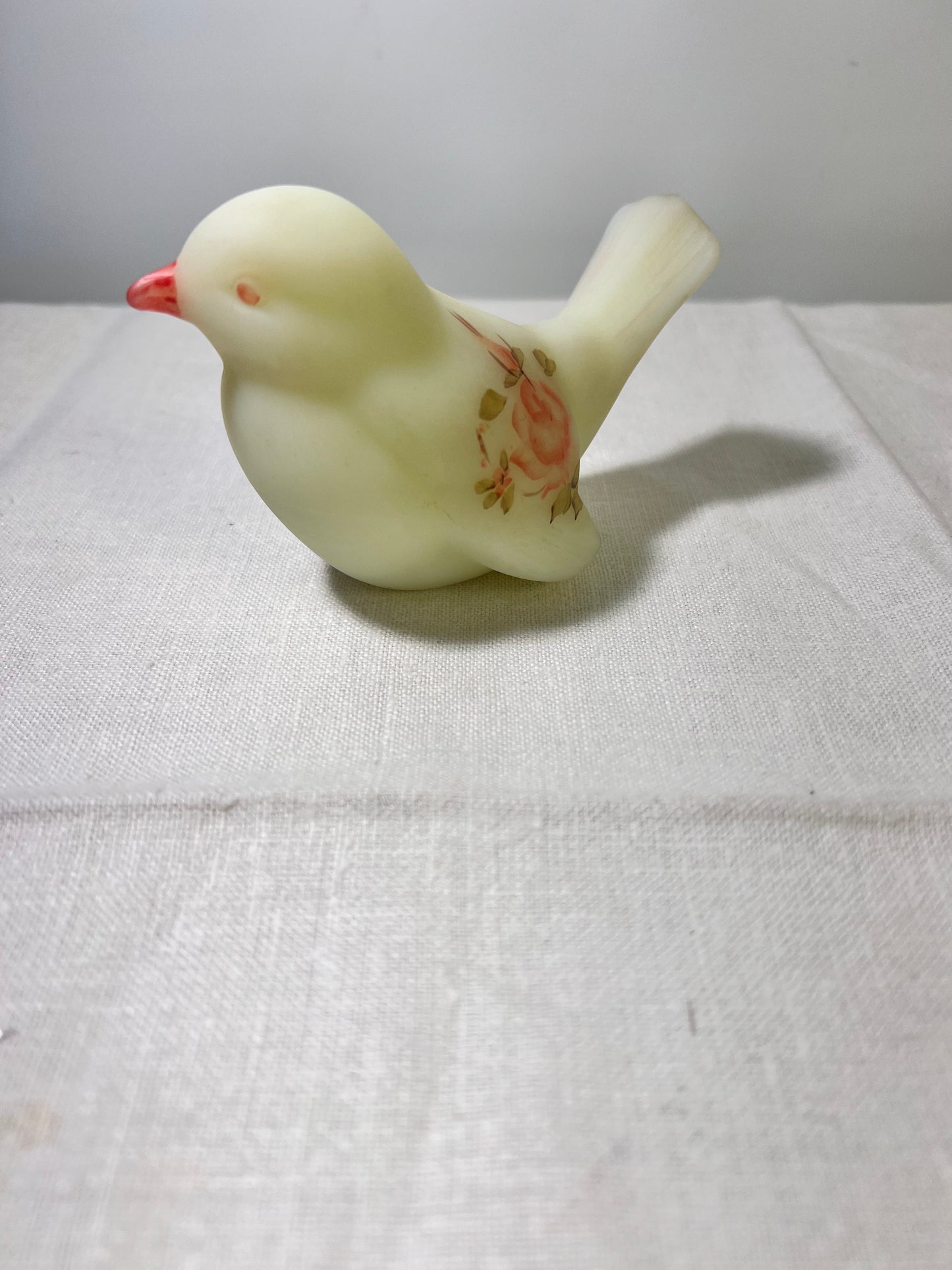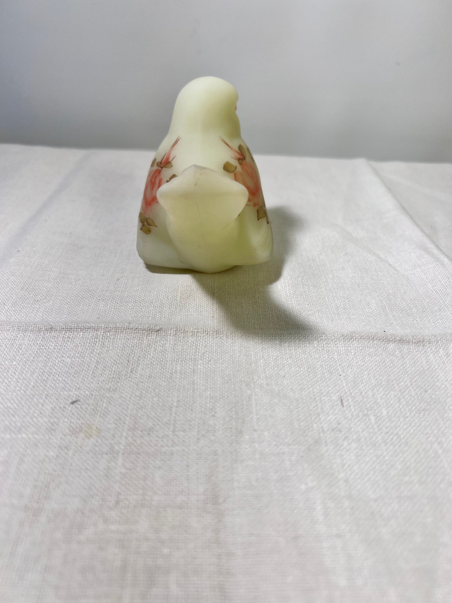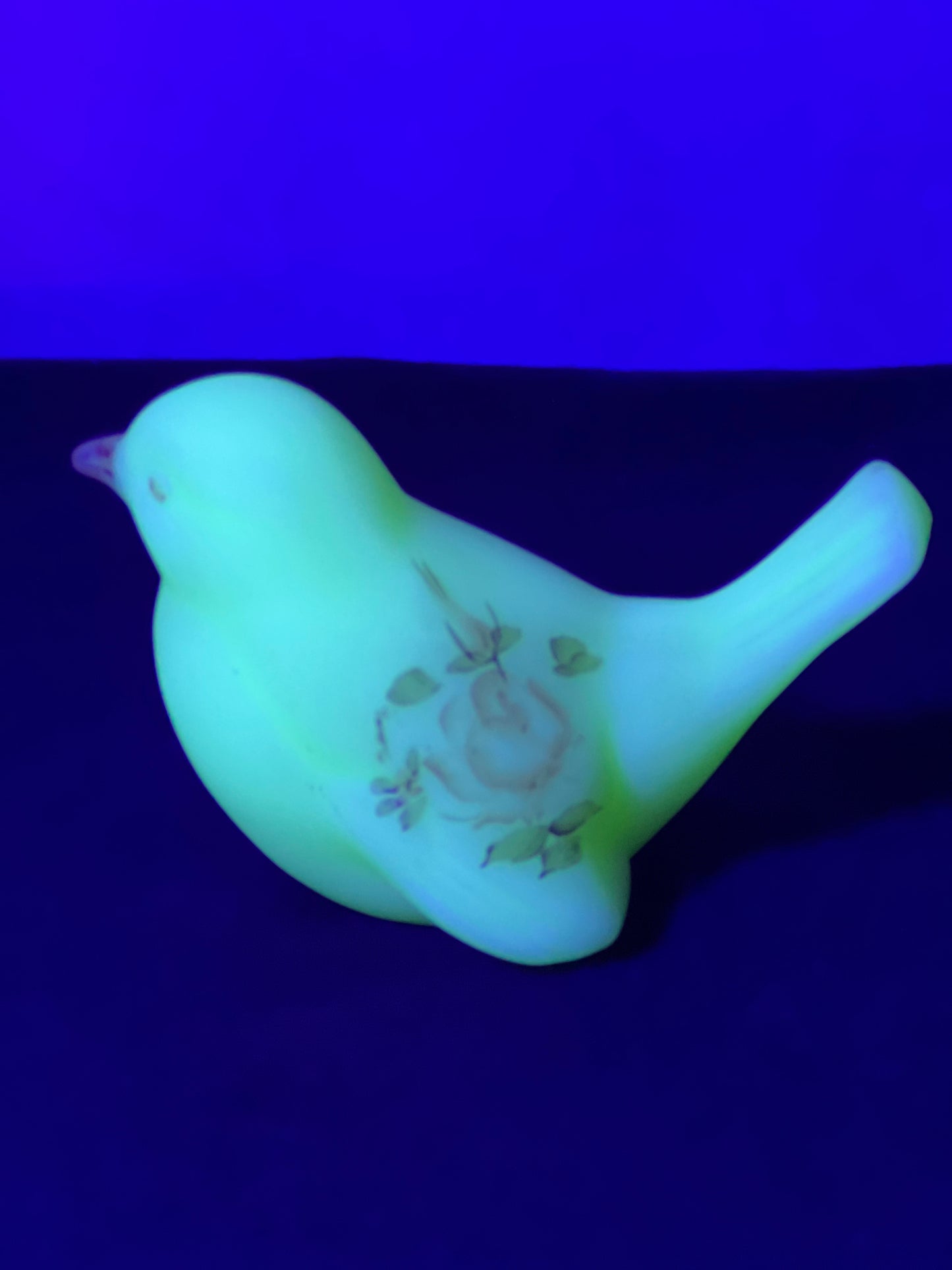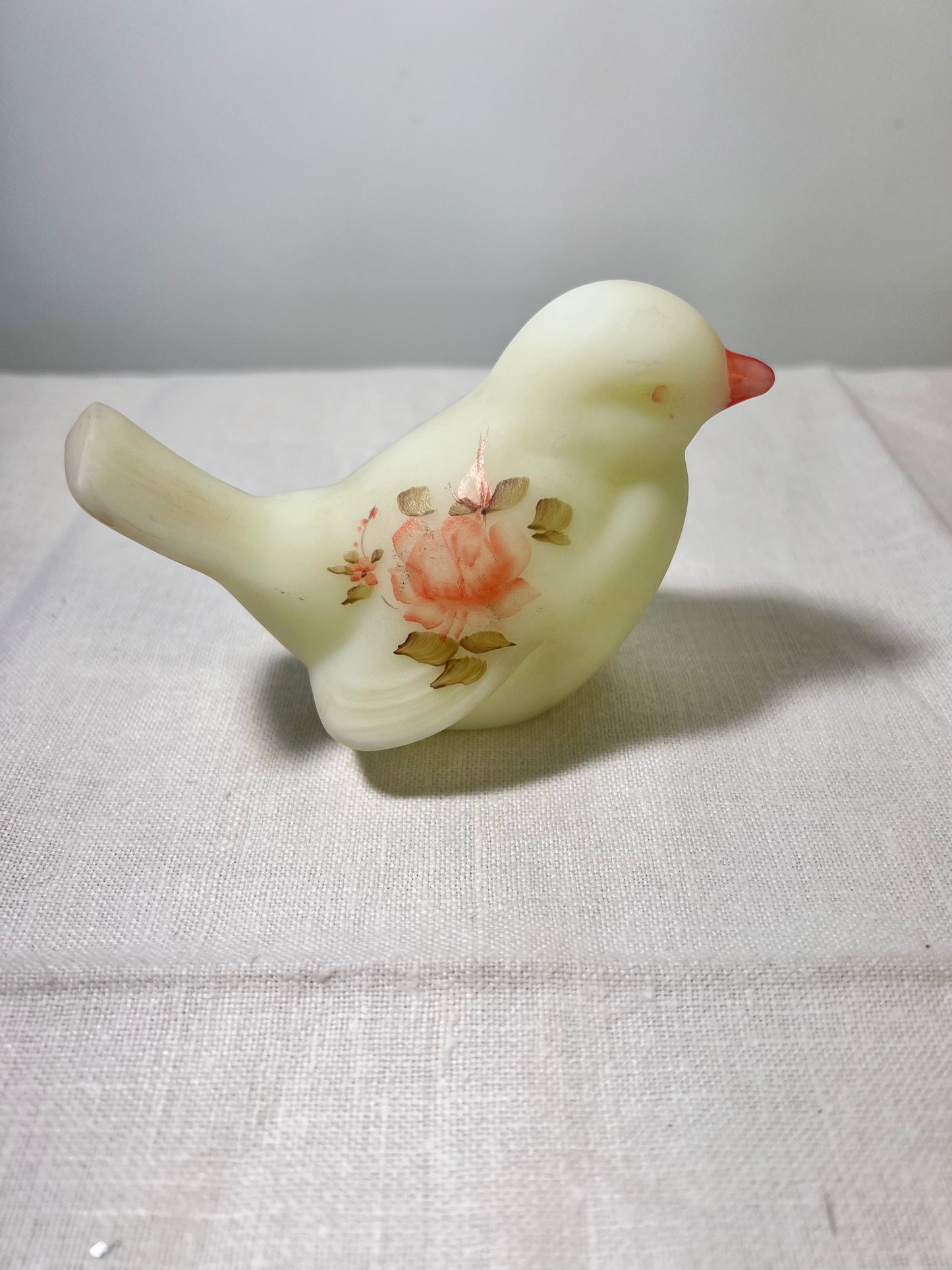 Uranium- Burmese Satin- Hand painted-Signed-Bird- Rose pattern