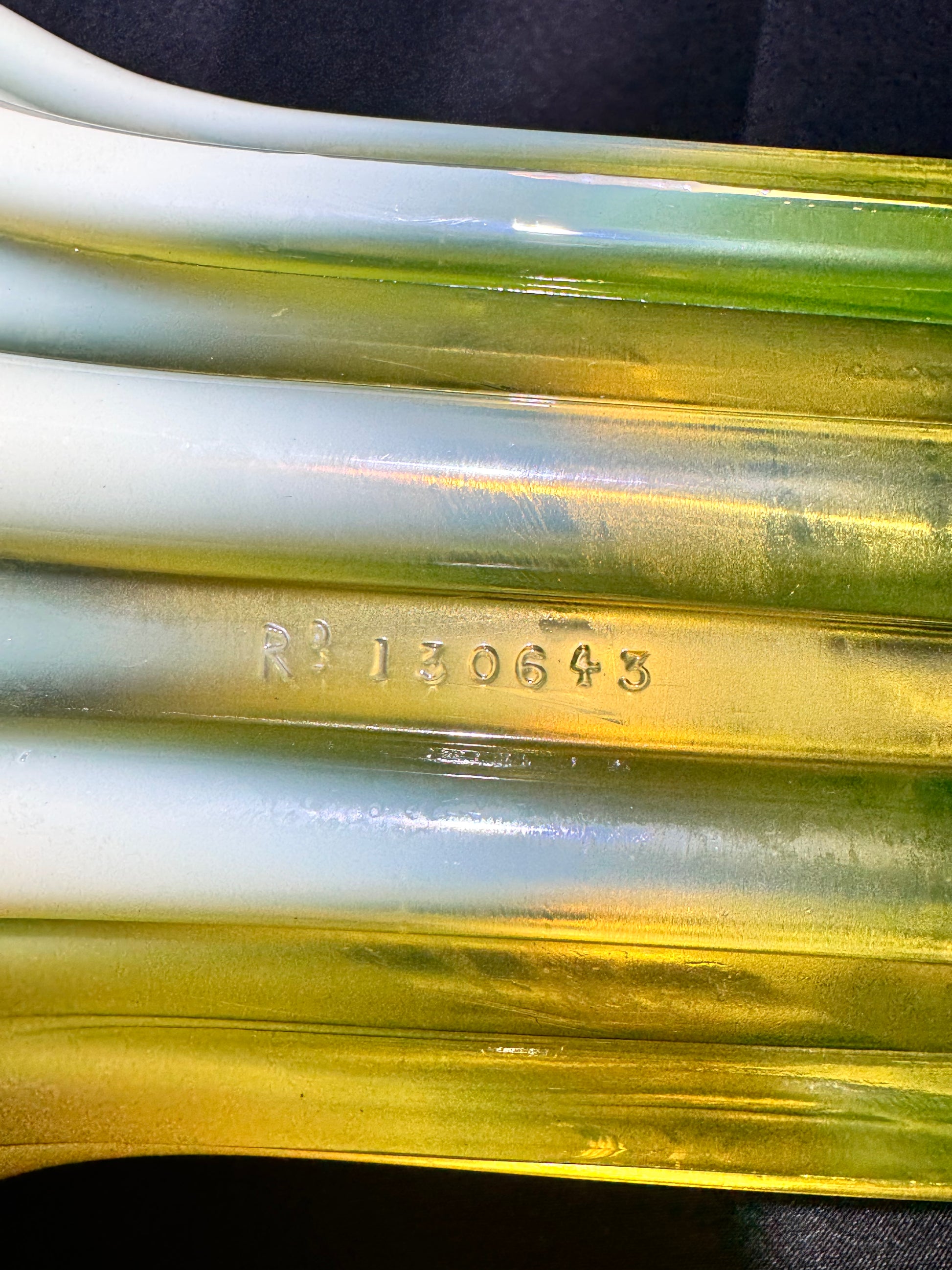A gorgeous piece for collectors of Victorian Pearline, uranium glass, or Davidson glassware.