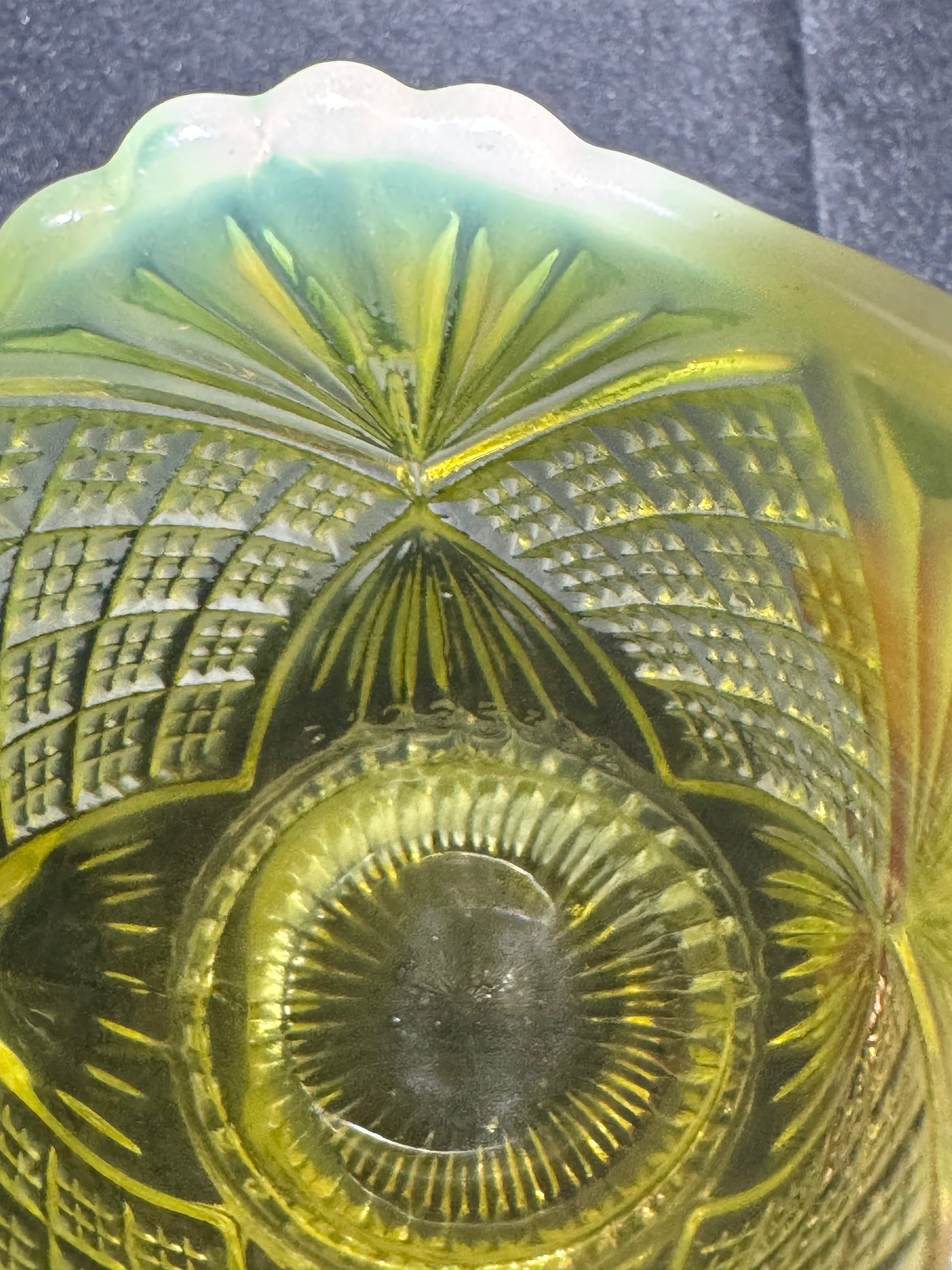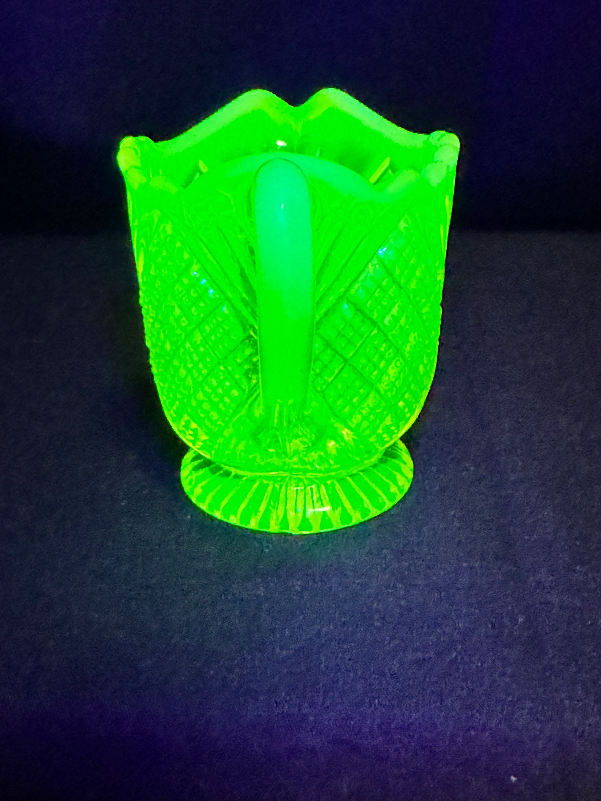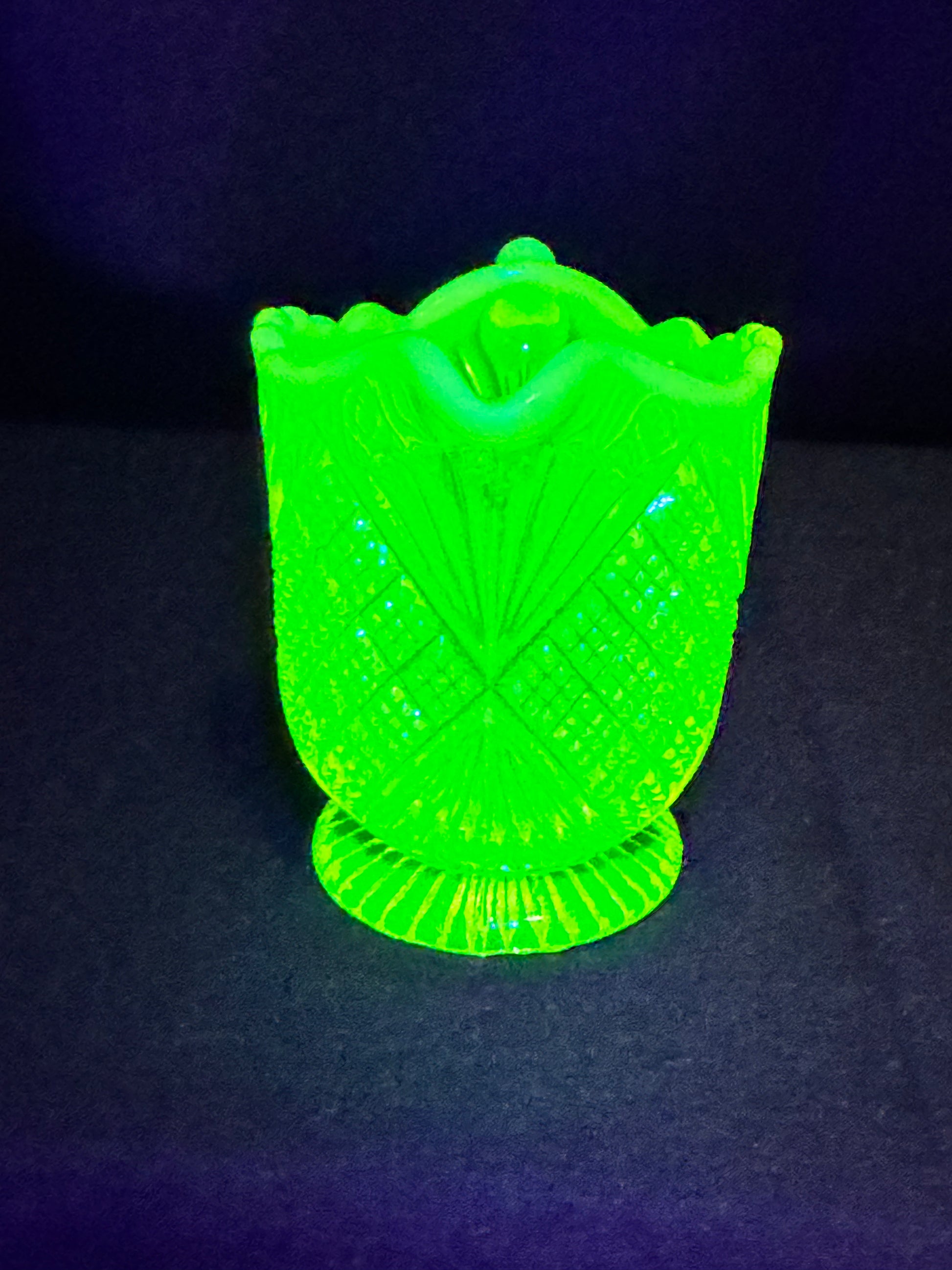 - Color: Primrose Pearline (Uranium Glass)