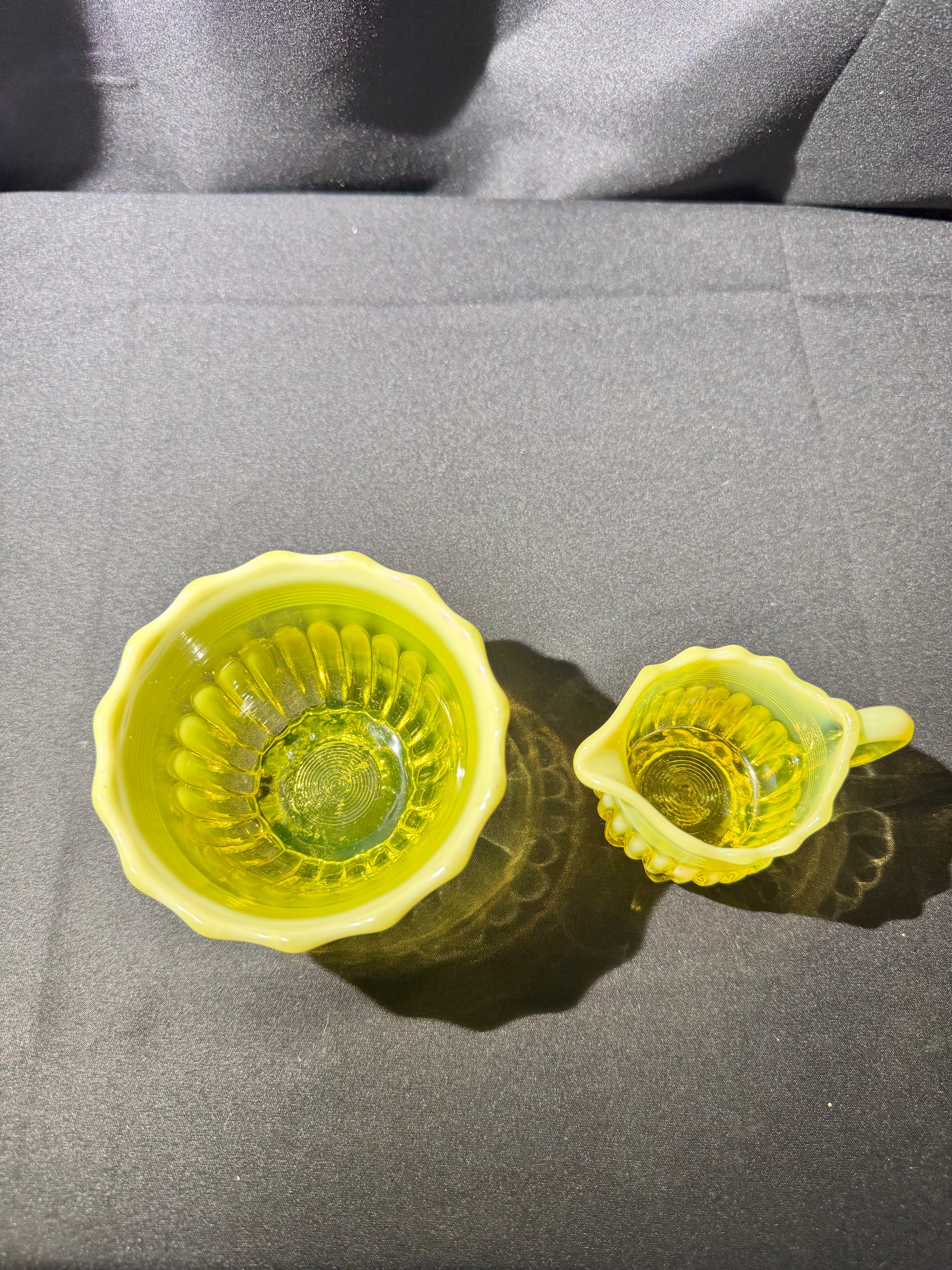 Uranium Glass Davidson Creamer & Sugar Set – Primrose Pearline “Lady Caroline” Collection