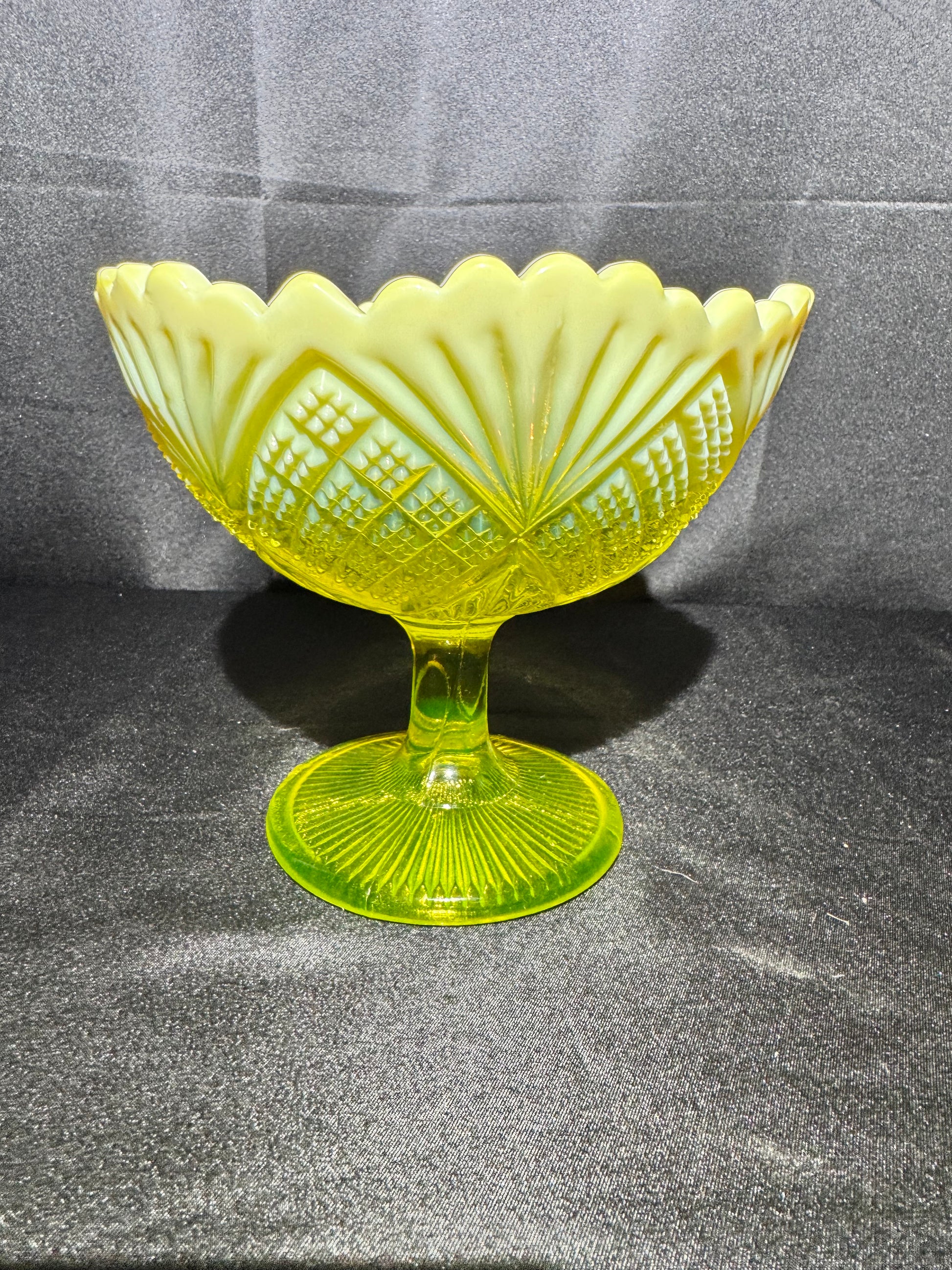Victorian Uranium Glass Davidson Primrose Pearline Footed Compote – RN 285342