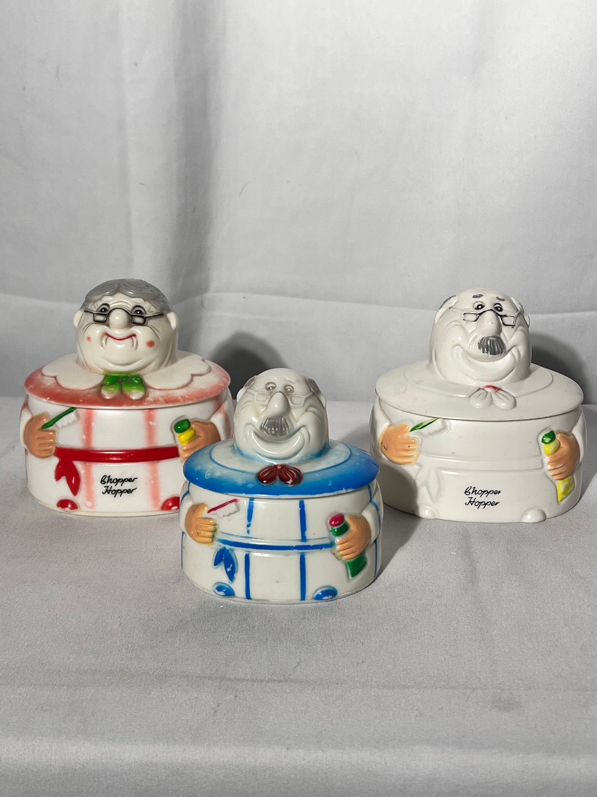 Vintage 1970s-set of 3 chopper hopper - plastic denture holders