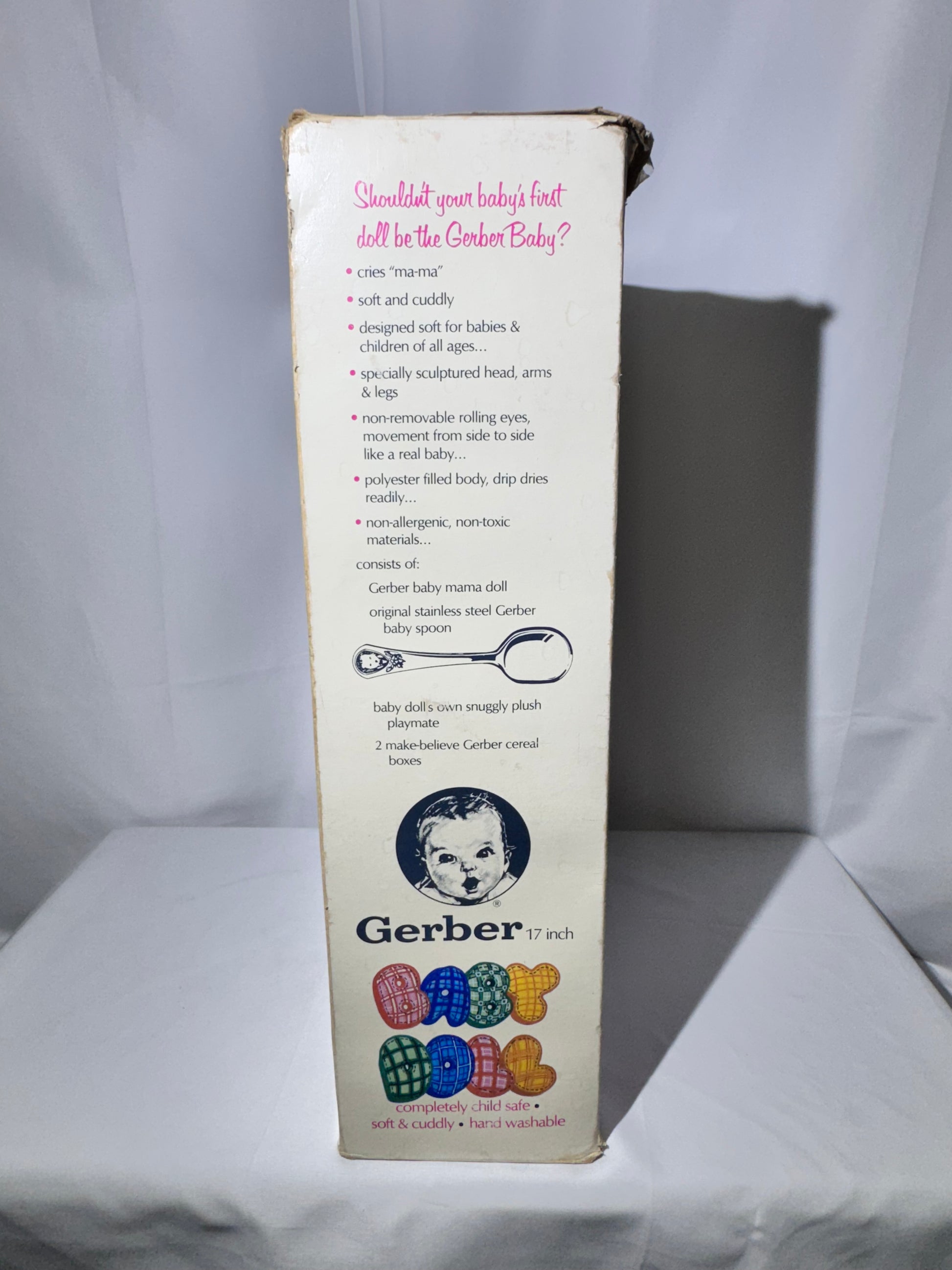 The doll measures approximately 17 inches tall and still cries “Ma-Ma” when activated. She has been beautifully preserved and remains a charming collectible from Gerber’s classic doll line.