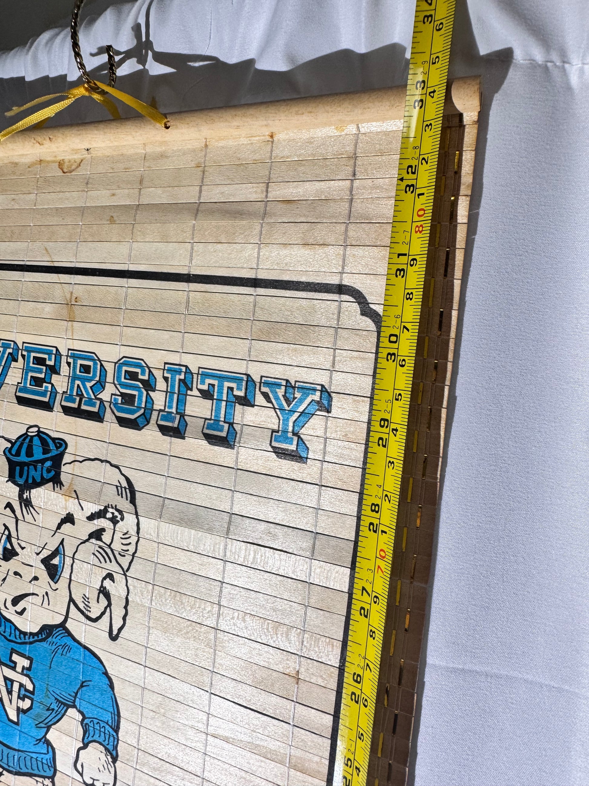 Bring home a unique piece of Tar Heels history with this vintage 1985 UNC calendar, crafted from bamboo and designed to hang beautifully on the wall. It measures approximately 12.5 inches wide and 33 inches long, making it a standout display piece for any UNC fan or vintage collector.