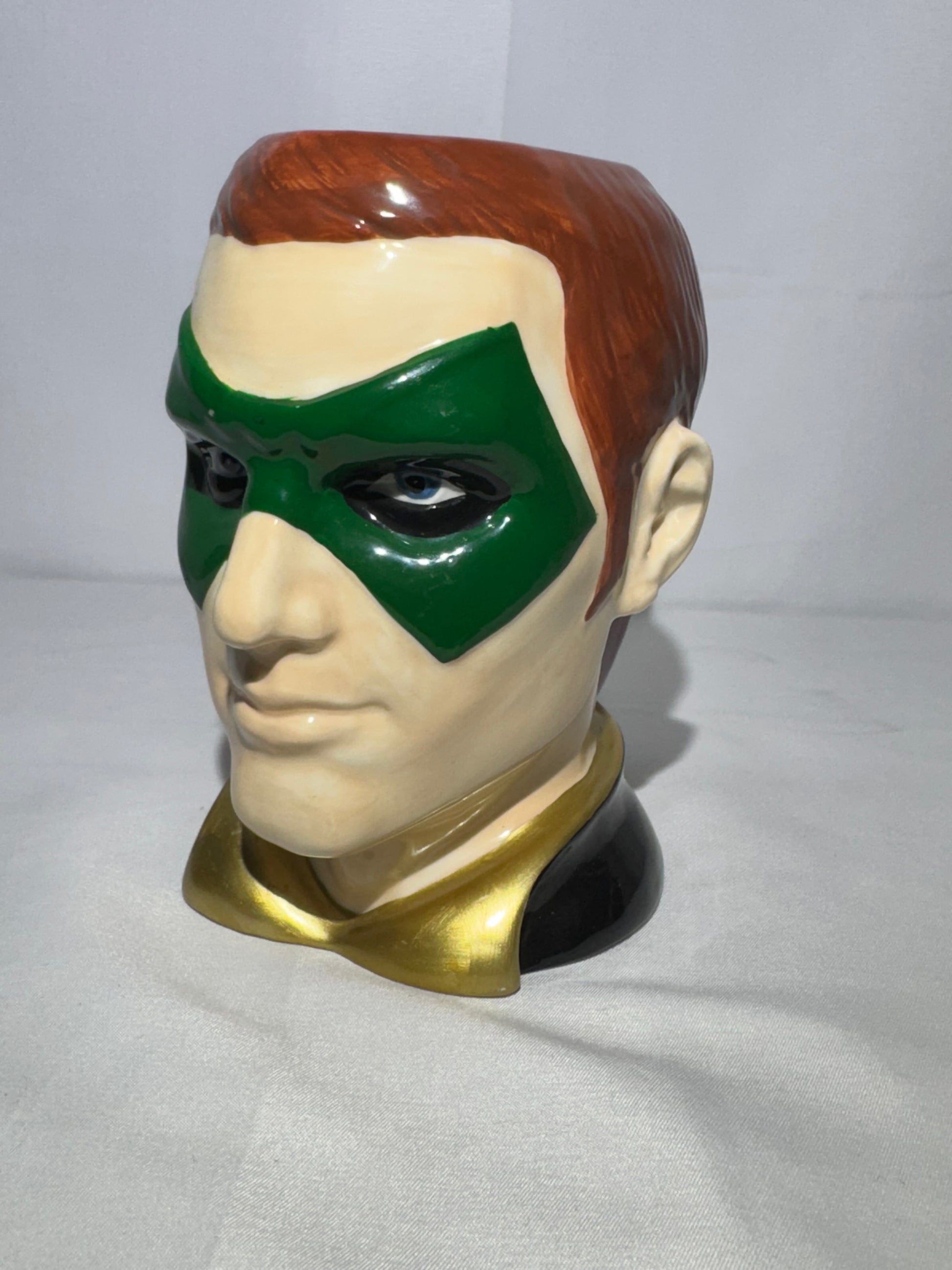 This listing is for a vintage 3D ceramic mug featuring Robin, as seen in the 1995 film Batman Forever. Produced by Applause, this sculpted mug highlights Robin’s classic look and is a great collectible for fans of the movie and DC Comics characters.