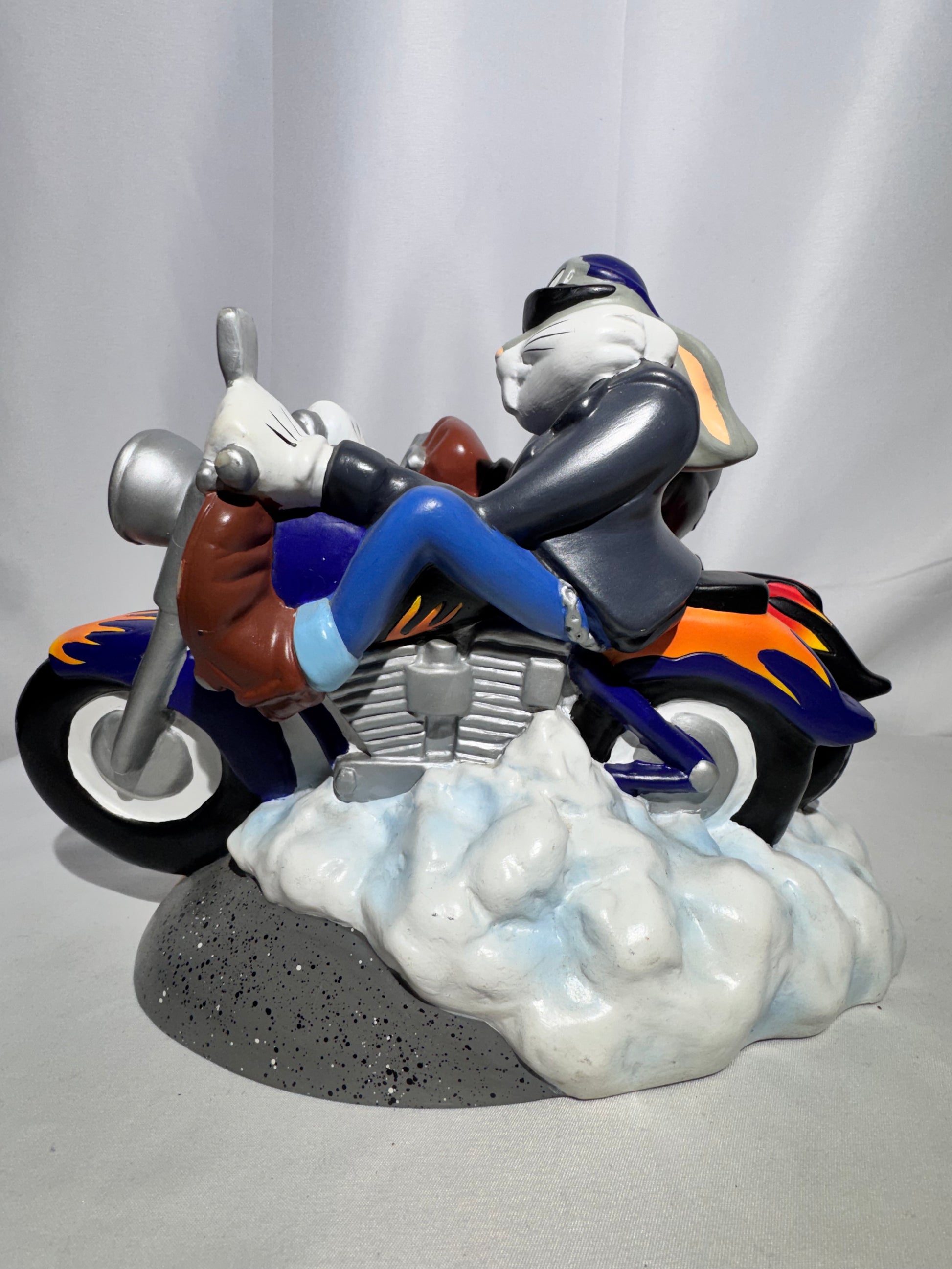 Perfect for display on a shelf, desk, or as part of a Looney Tunes or motorcycle-themed collection. A whimsical collectible for fans and collectors alike
