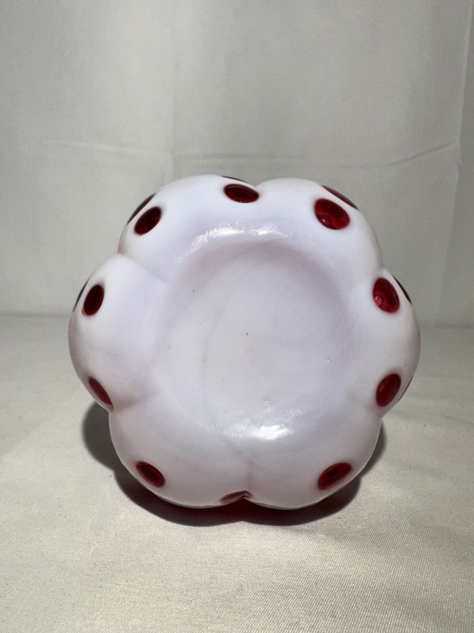 Add a classic touch to your collection with this beautiful vintage Barber bottle featuring a striking cranberry glass body with a white coin dot pattern. The color contrast gives it a timeless, elegant look, perfect for display in any antique or Victorian-style décor.
