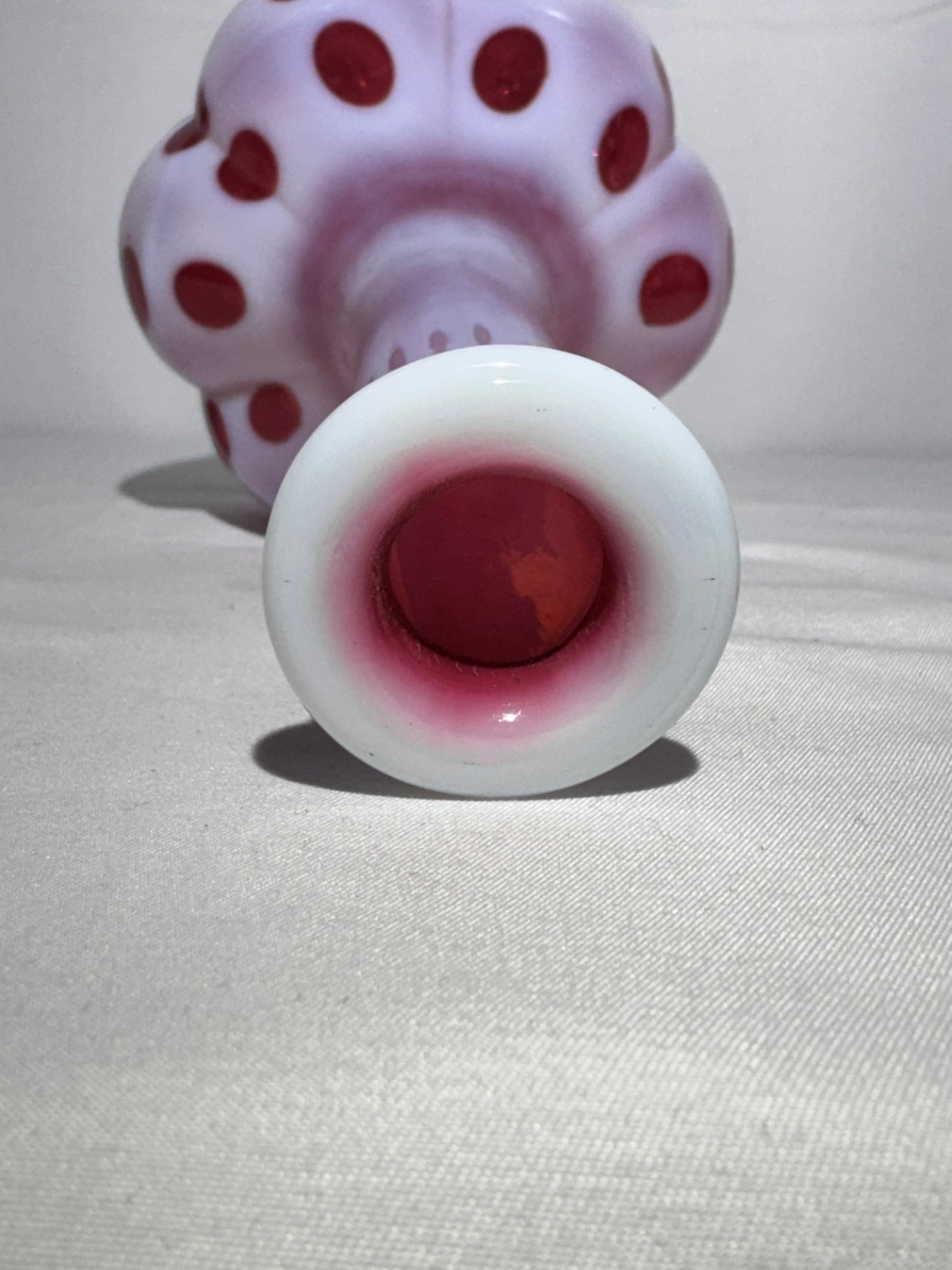 Vintage Cranberry & White Coin Dot Barber Bottle w/ Original Topper