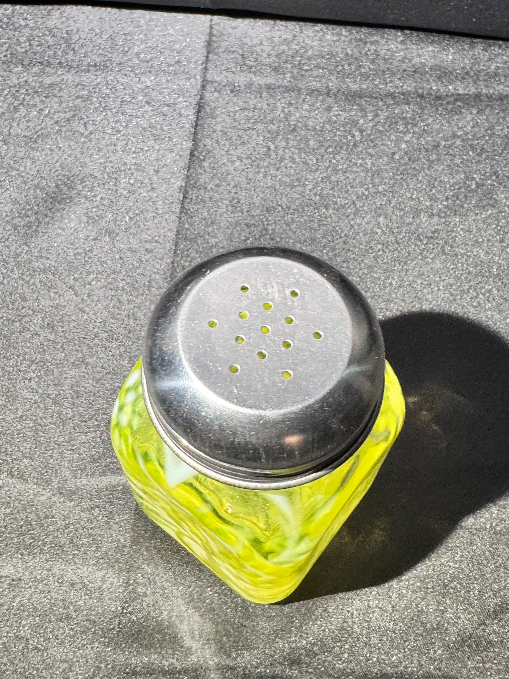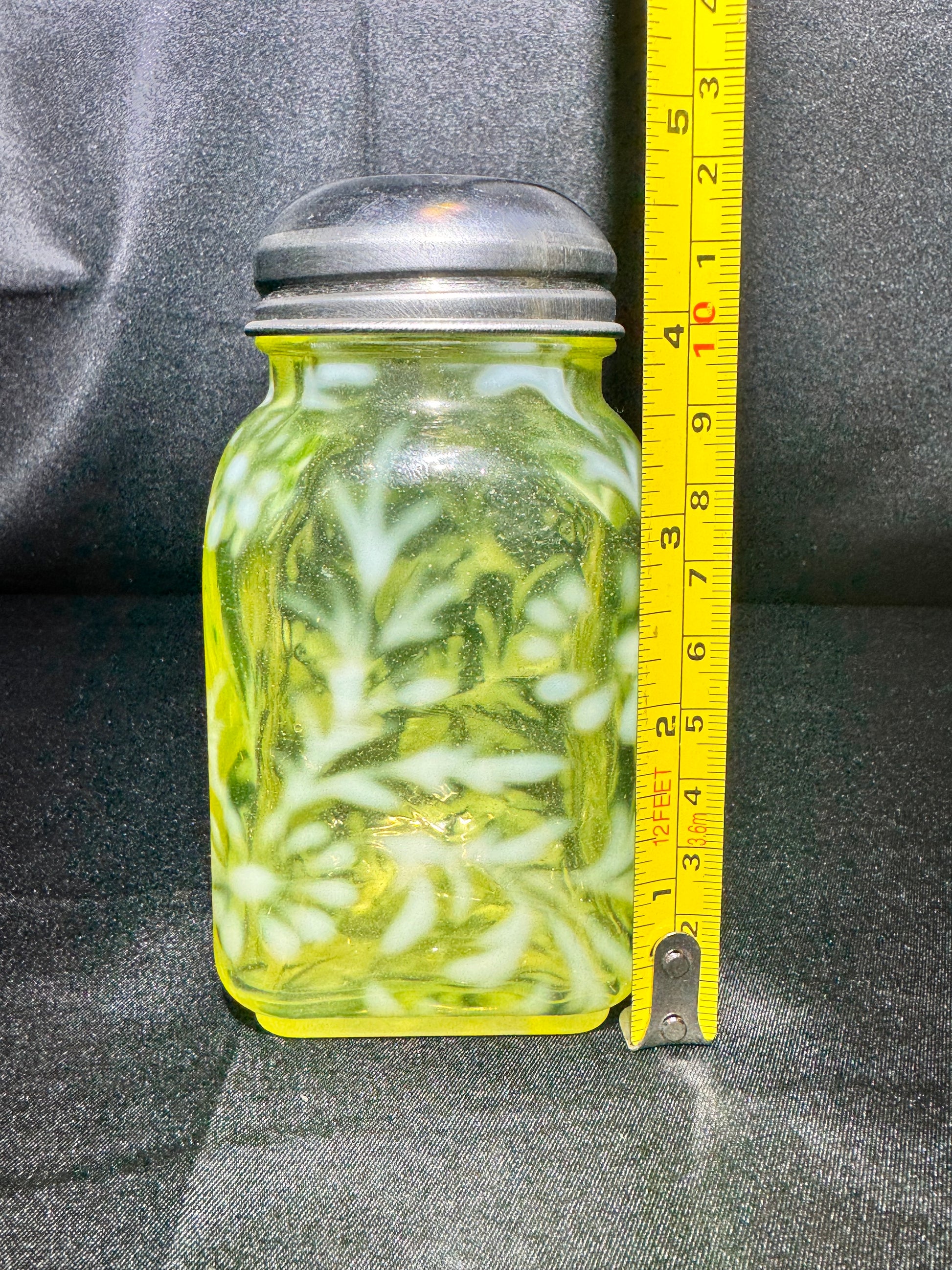 Vintage Daisy & Fern Square Shaker – Uranium Glass