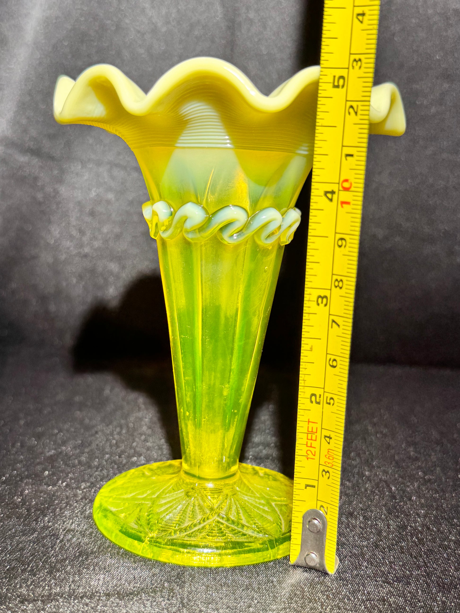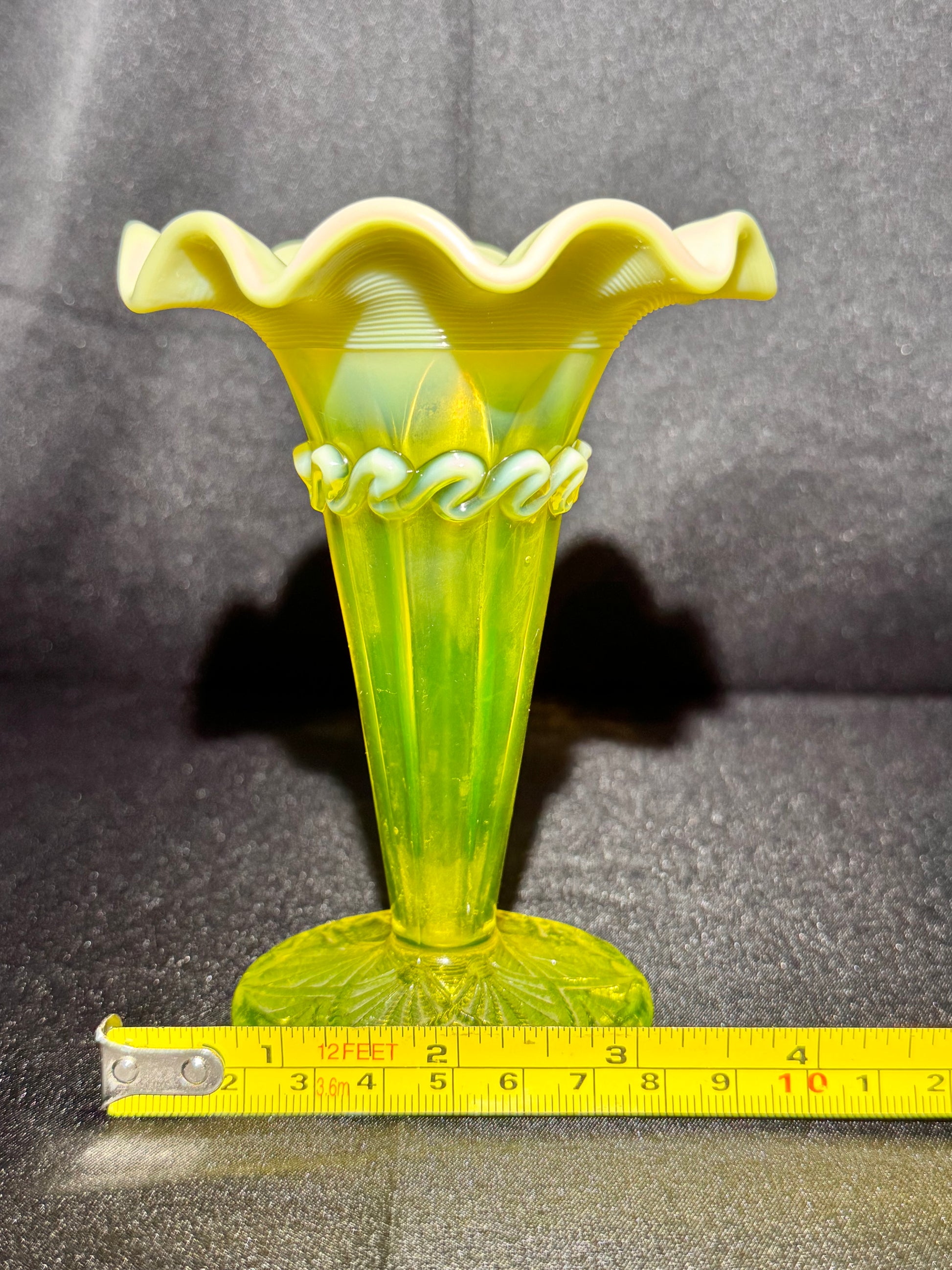 Vintage Davidson Pearline Primrose Uranium Glass Vase – Fluted & Ruffled