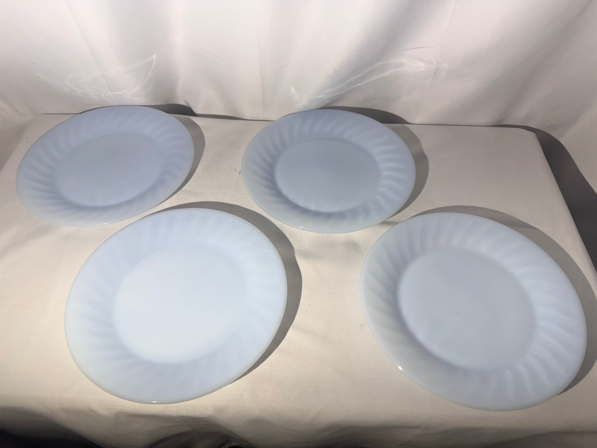 Vintage Fire-King Delphite Blue Scallop Swirl Rim Plates – Set of 4 (8”)