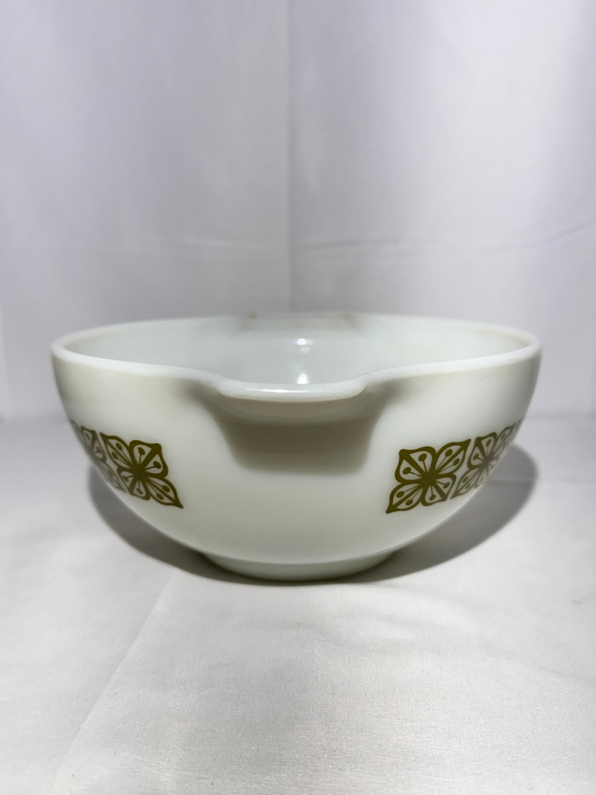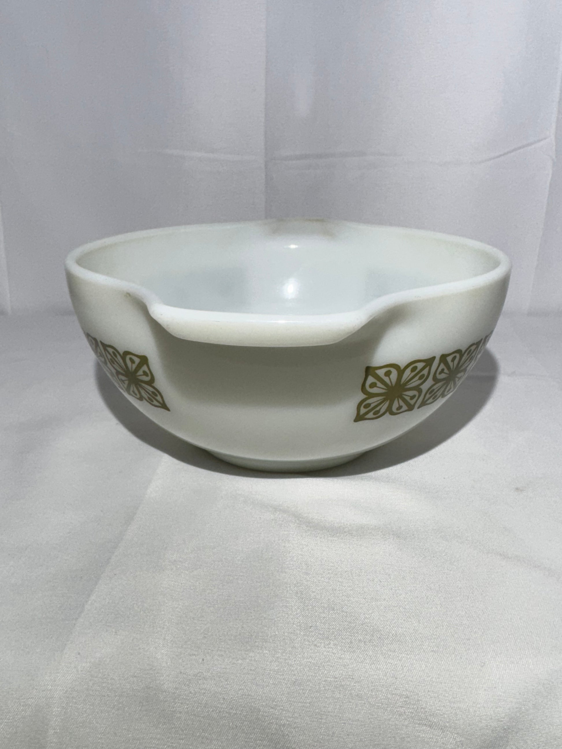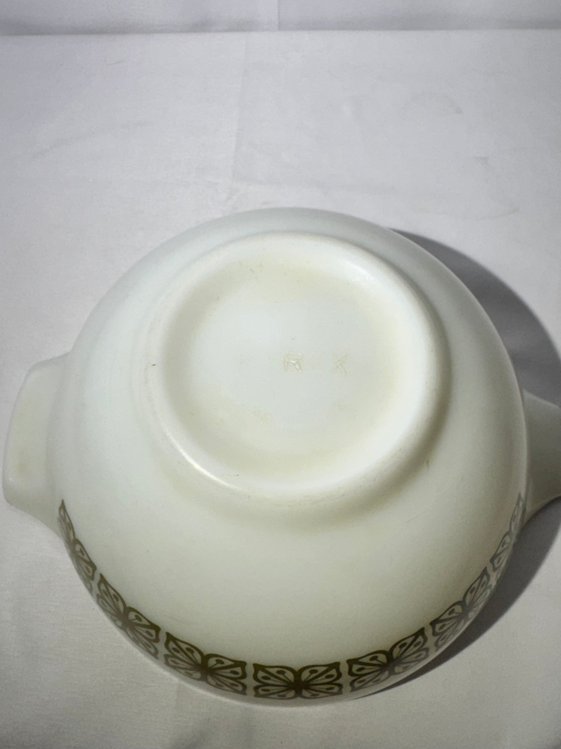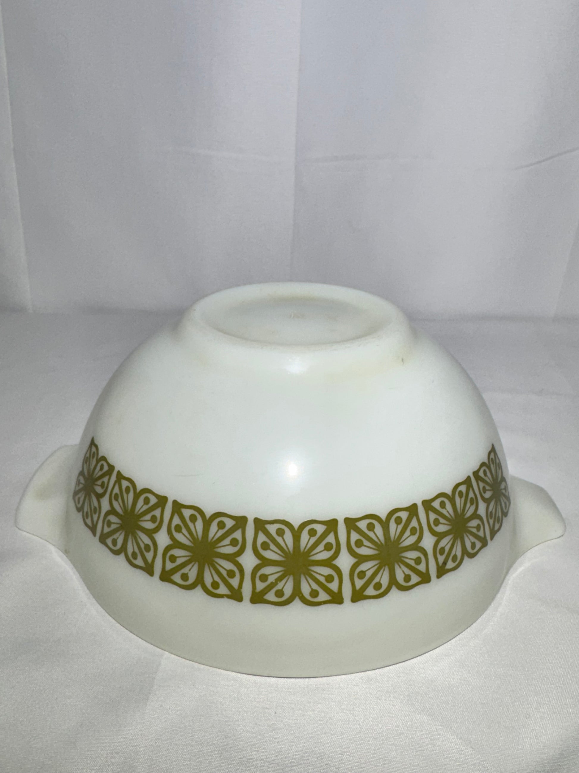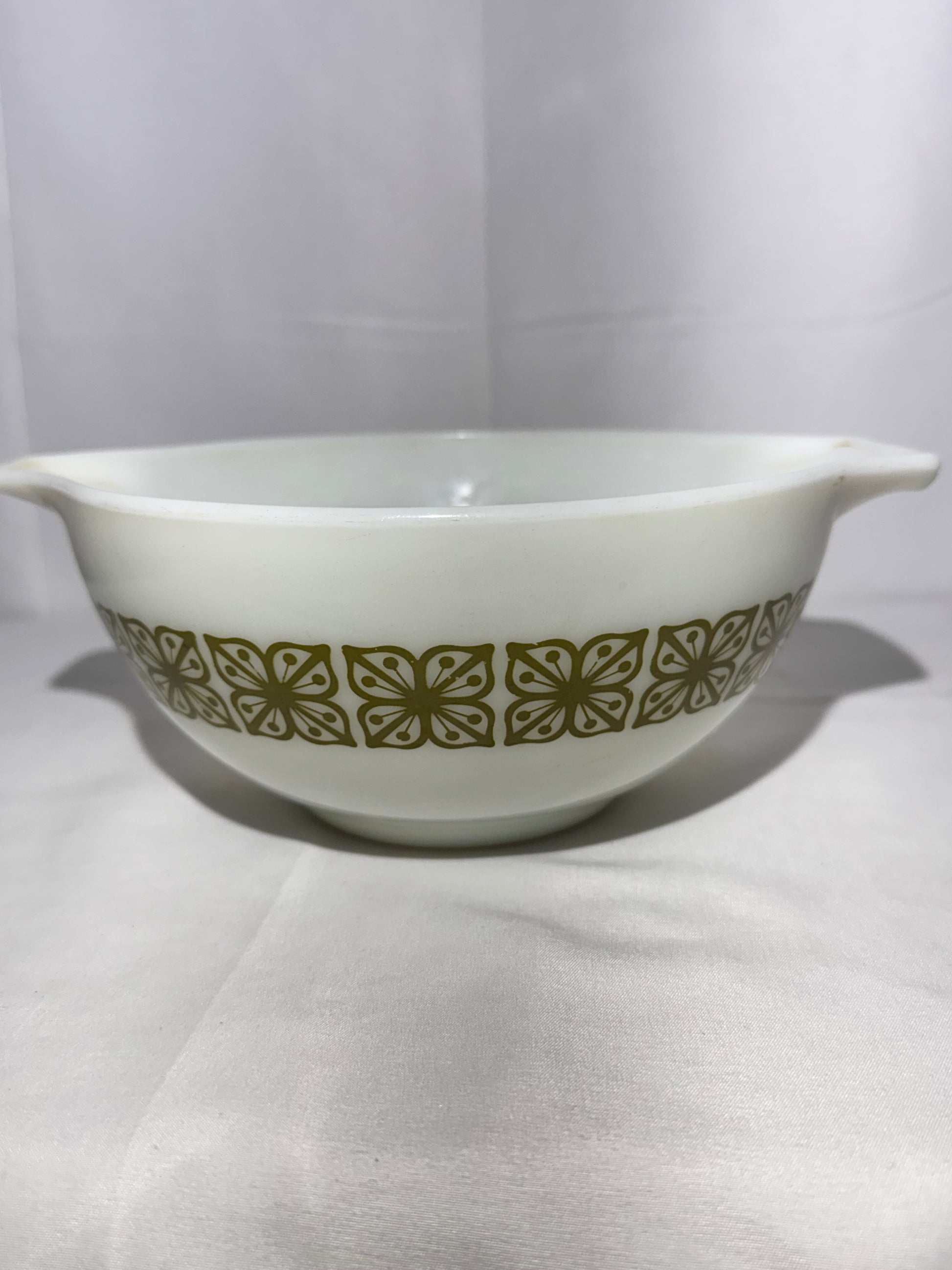Vintage Pyrex 1.5 Qt Cinderella Bowl – Autumn Floral / Dutch Clover (Verde Square Flowers) – #442