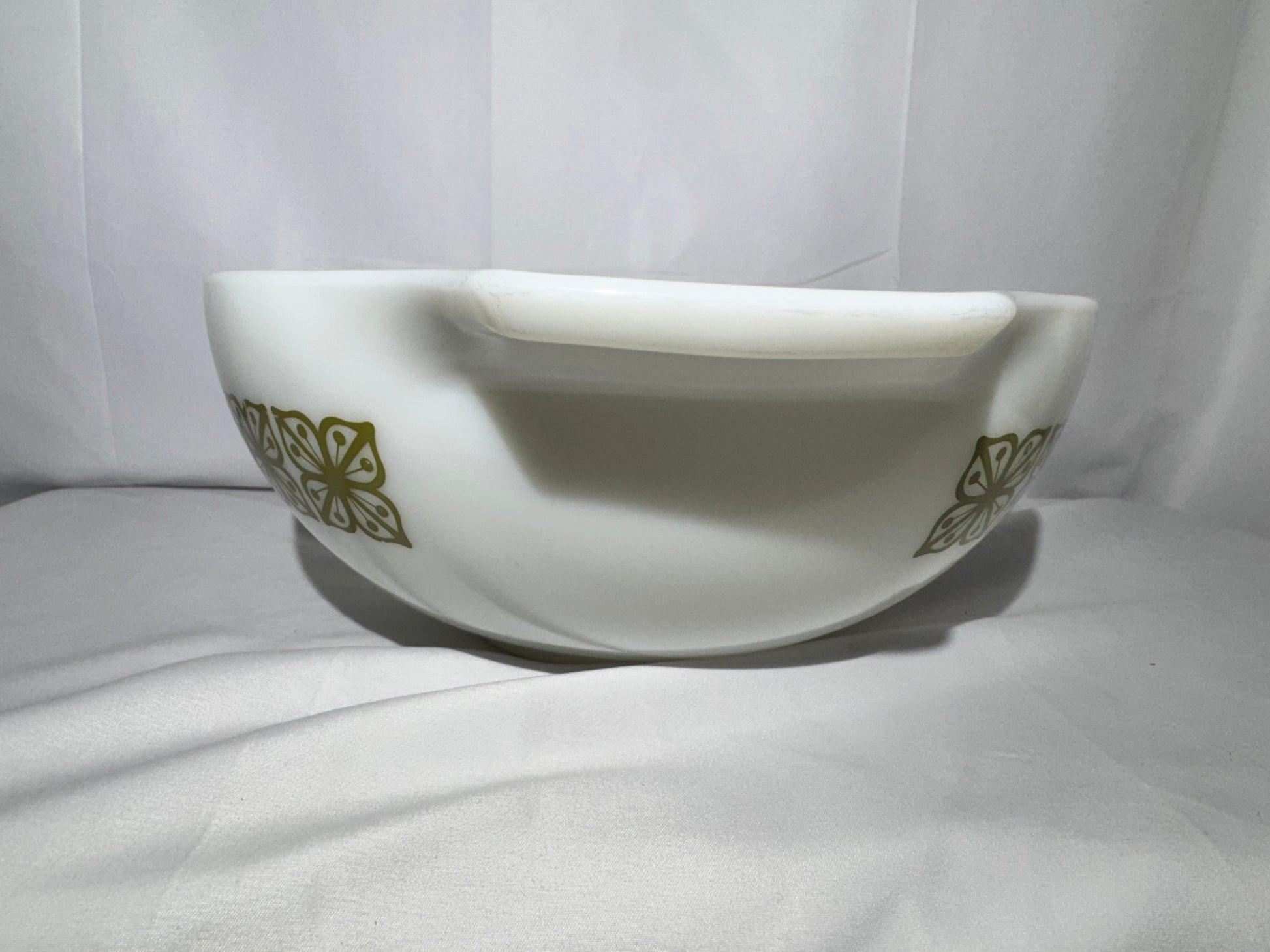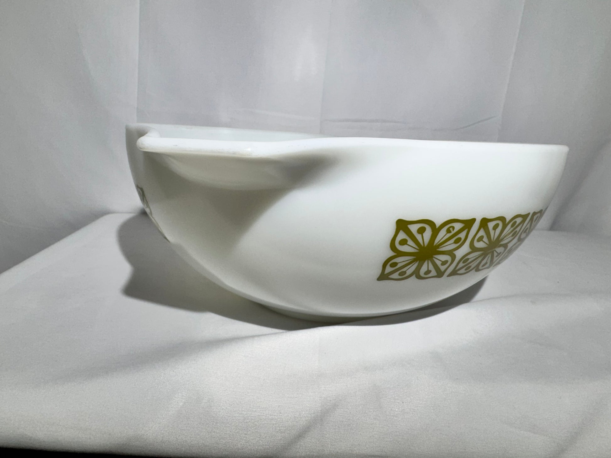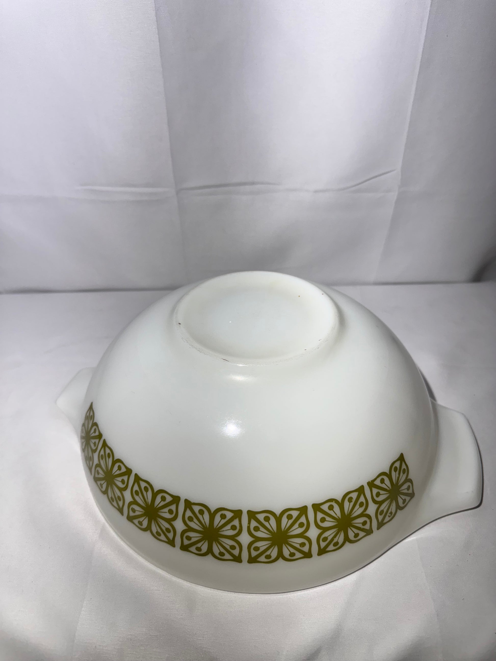 Vintage Pyrex 4 Qt Cinderella Mixing Bowl – Autumn Floral / Dutch Clover (Verde Square Flowers) – #444