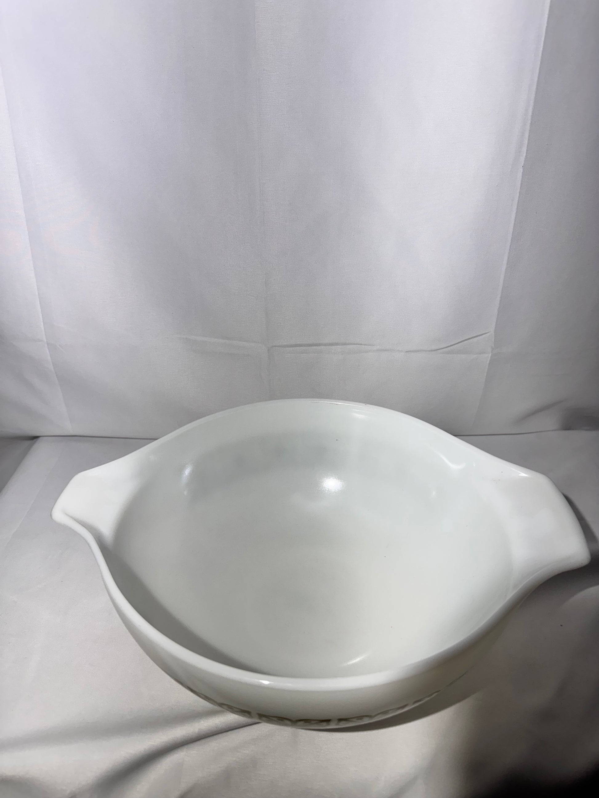 Bring home a classic Pyrex favorite with this 4 quart Cinderella mixing bowl in the beloved Autumn Floral / Dutch Clover / Verdi Square Flowers pattern. This larger size is perfect for collectors completing their sets or anyone who loves vintage kitchenware with a timeless look.