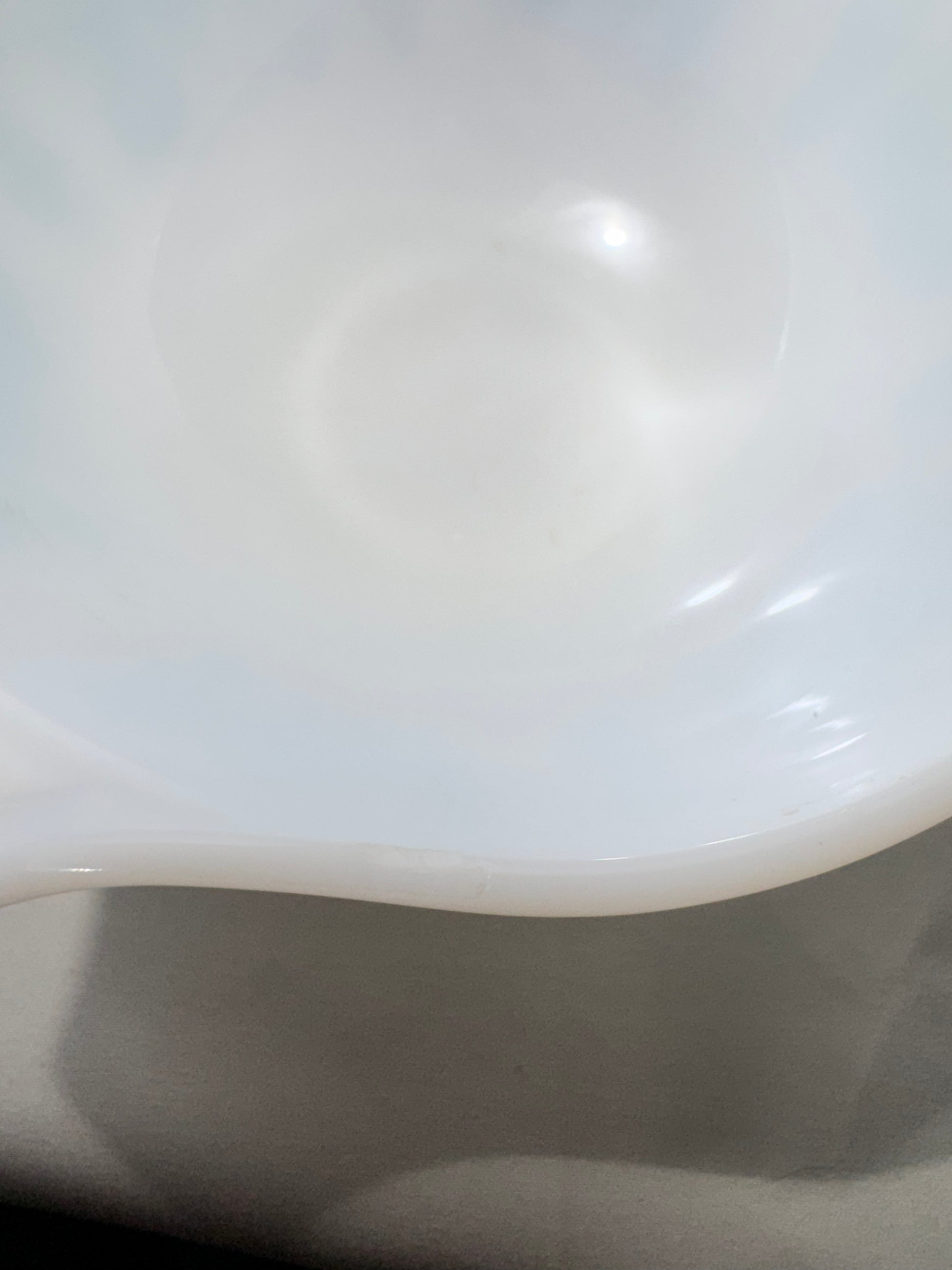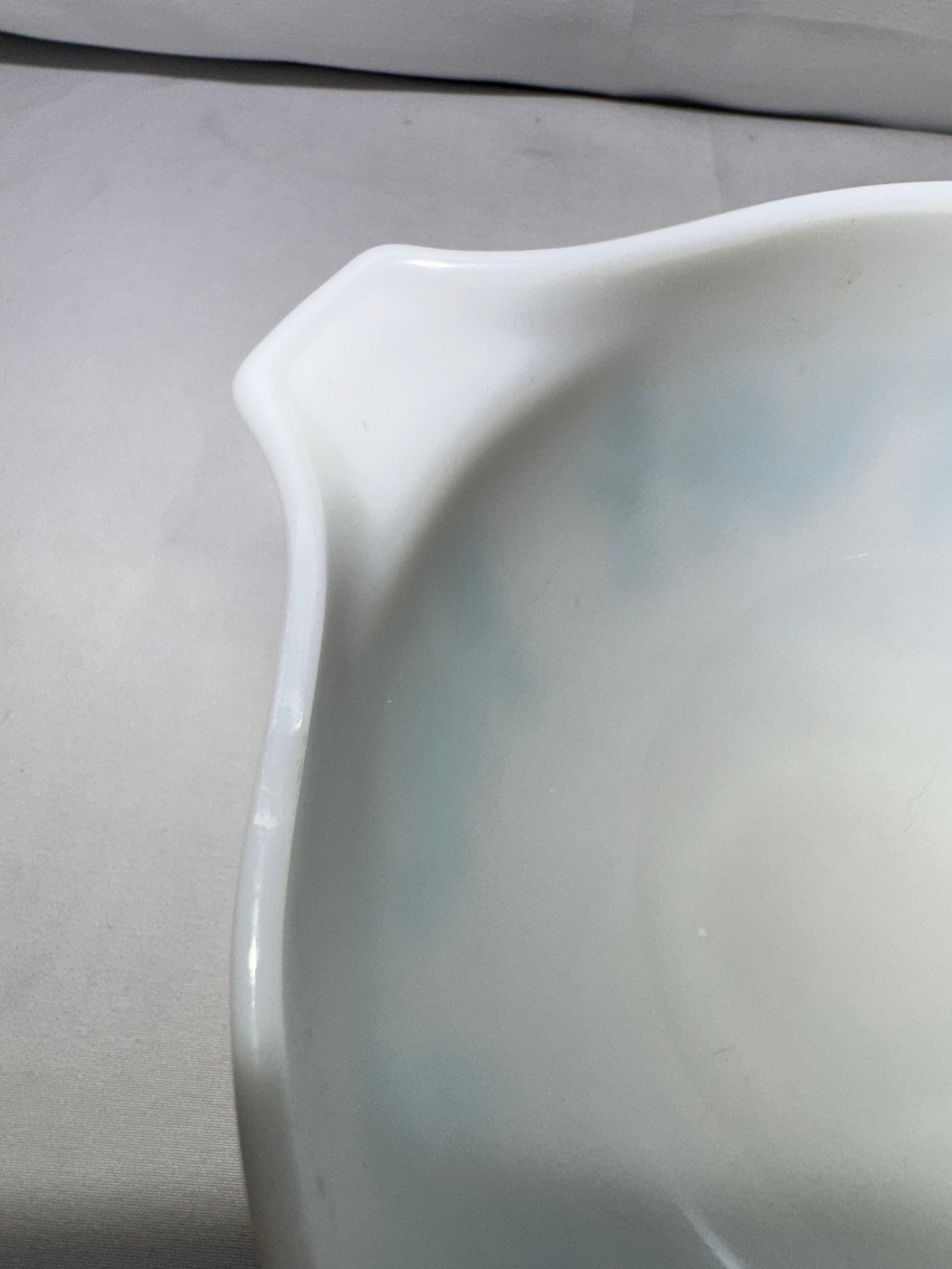 - #441 (1½ pint): White with blue/teal Butterprint design – small imperfection noted in photos.